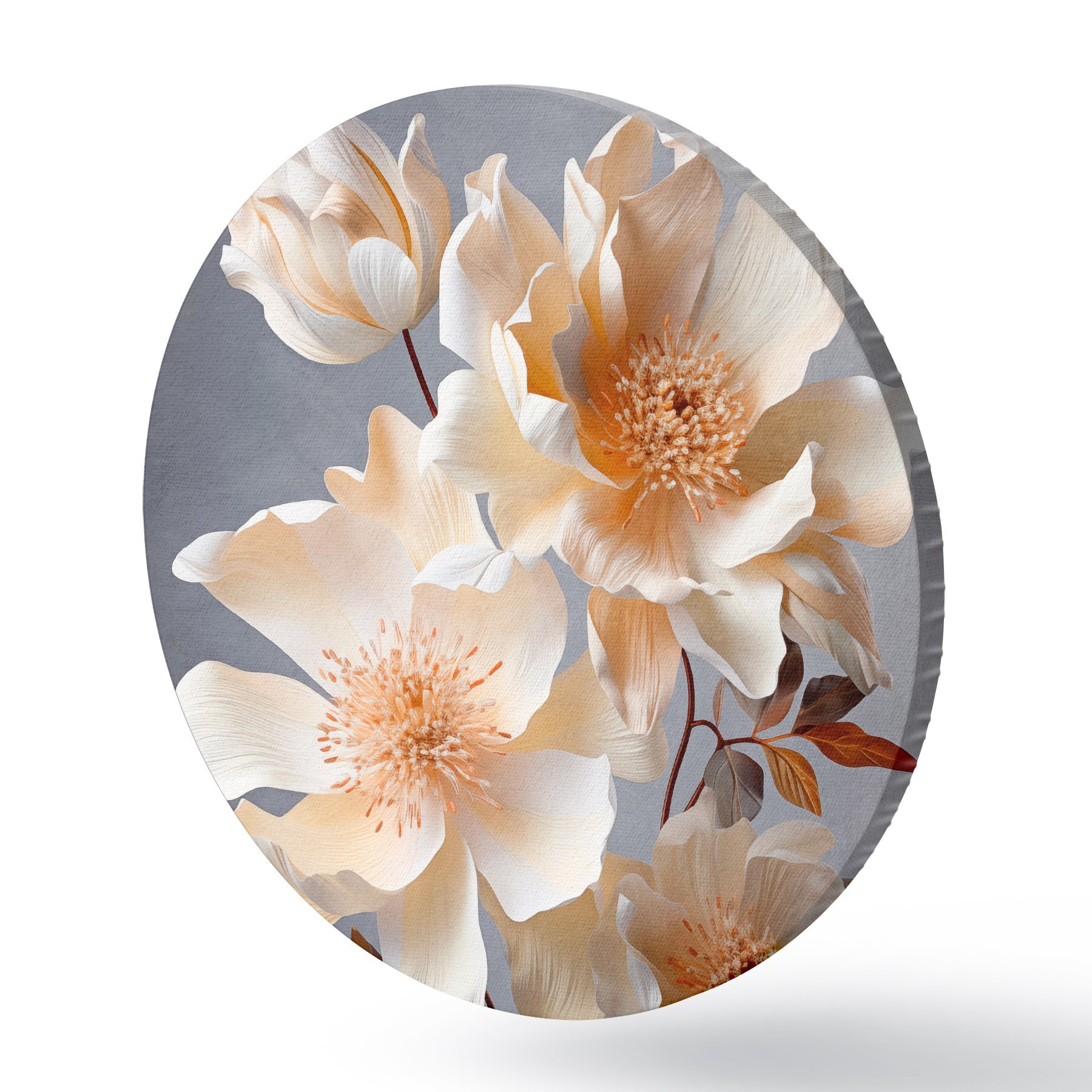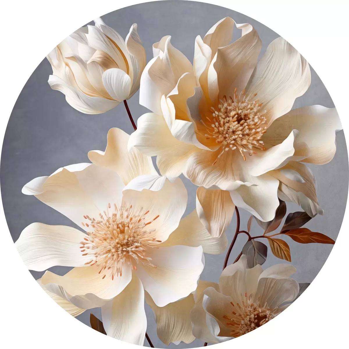 Picturi rotunde Flori texturate cu pistil portocaliu și frunze portocalii pe fundal gri, lumină moale, elegant, detaliat, realist Nr r45181