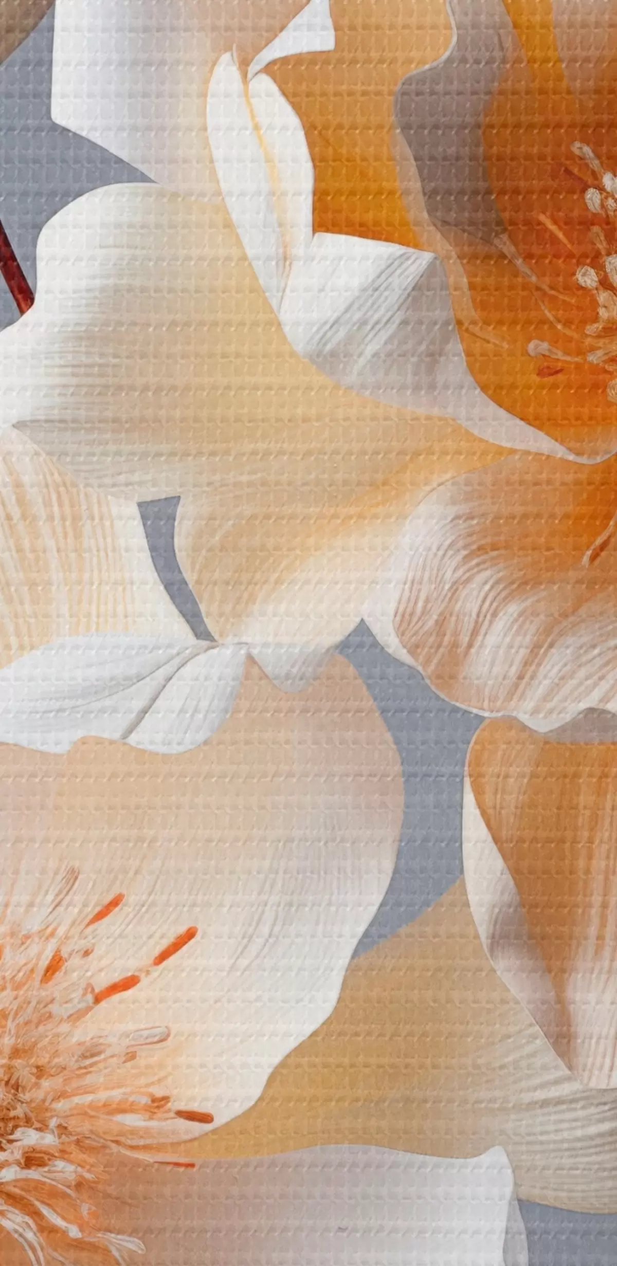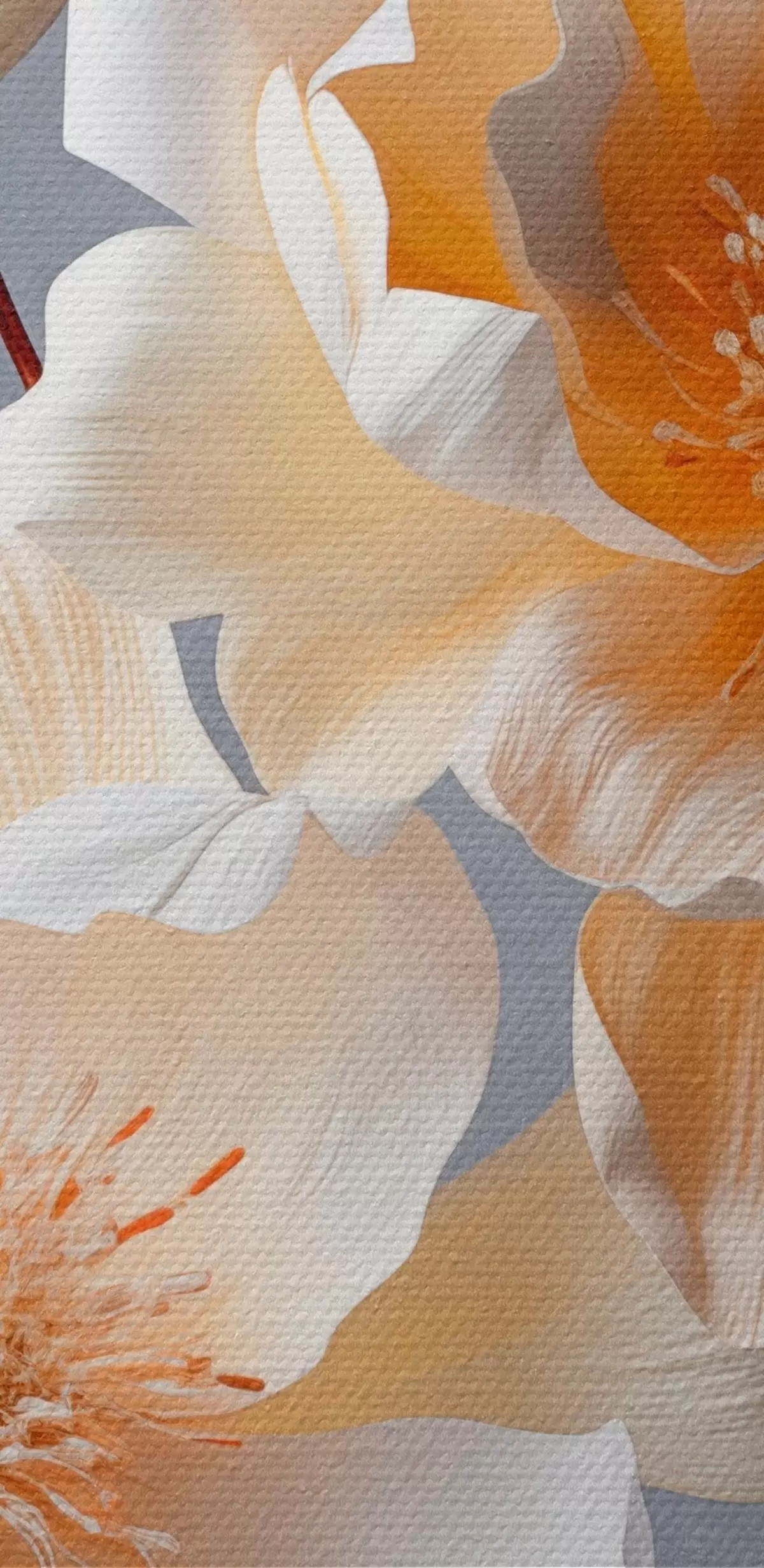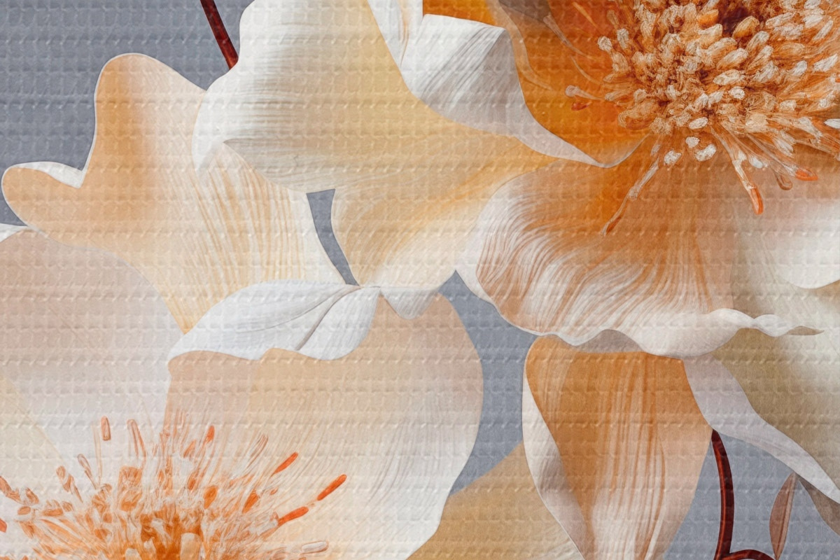 Picturi rotunde Flori texturate cu pistil portocaliu și frunze portocalii pe fundal gri, lumină moale, elegant, detaliat, realist r45181