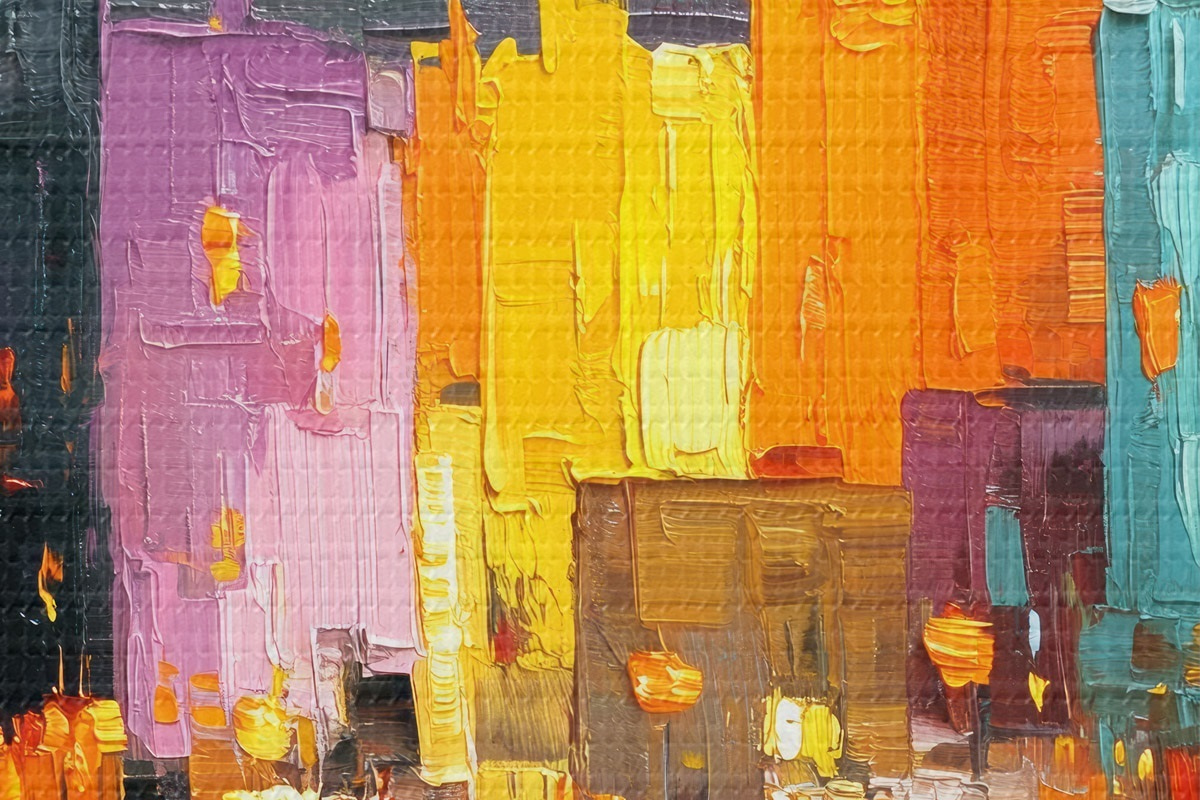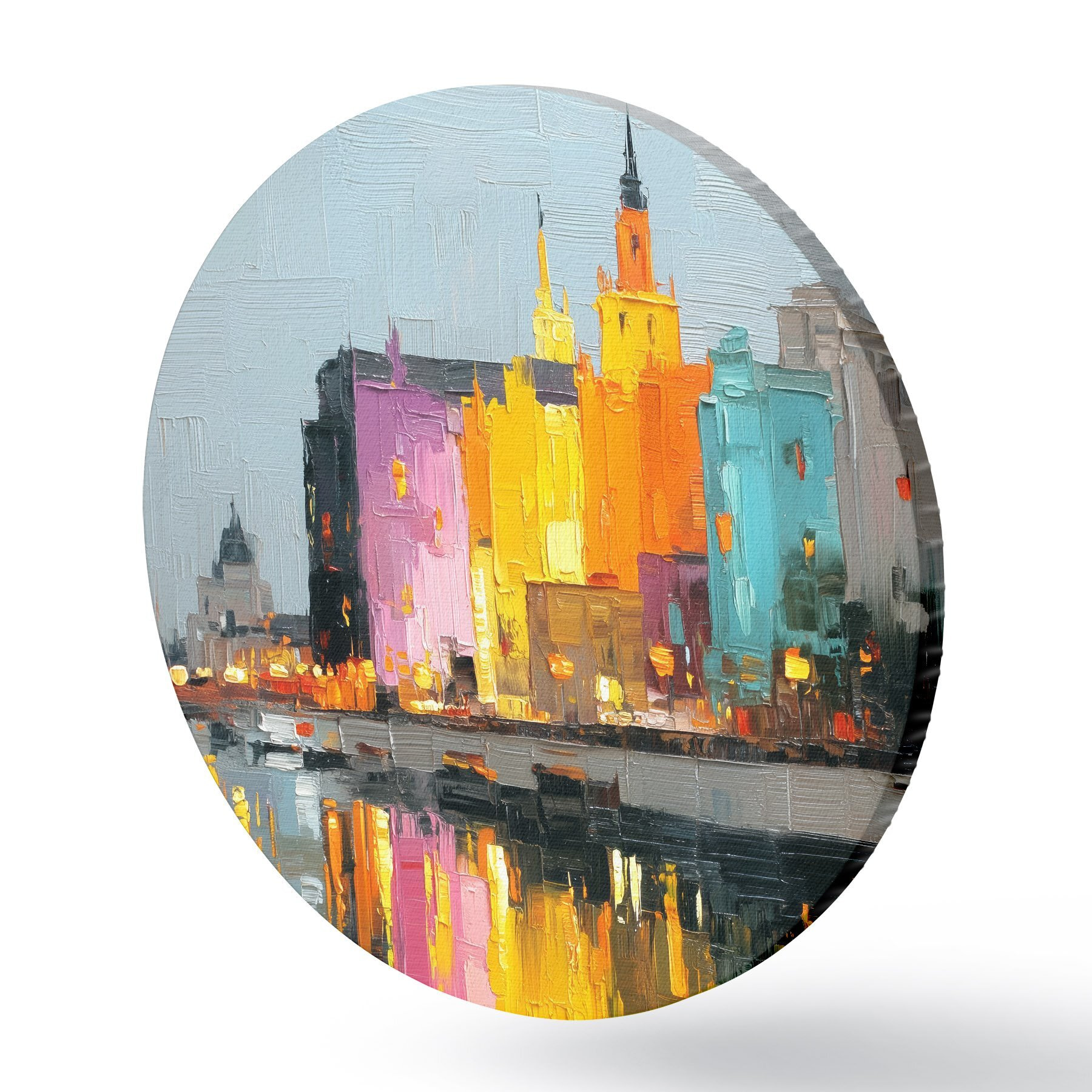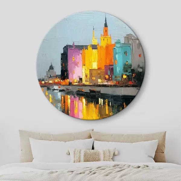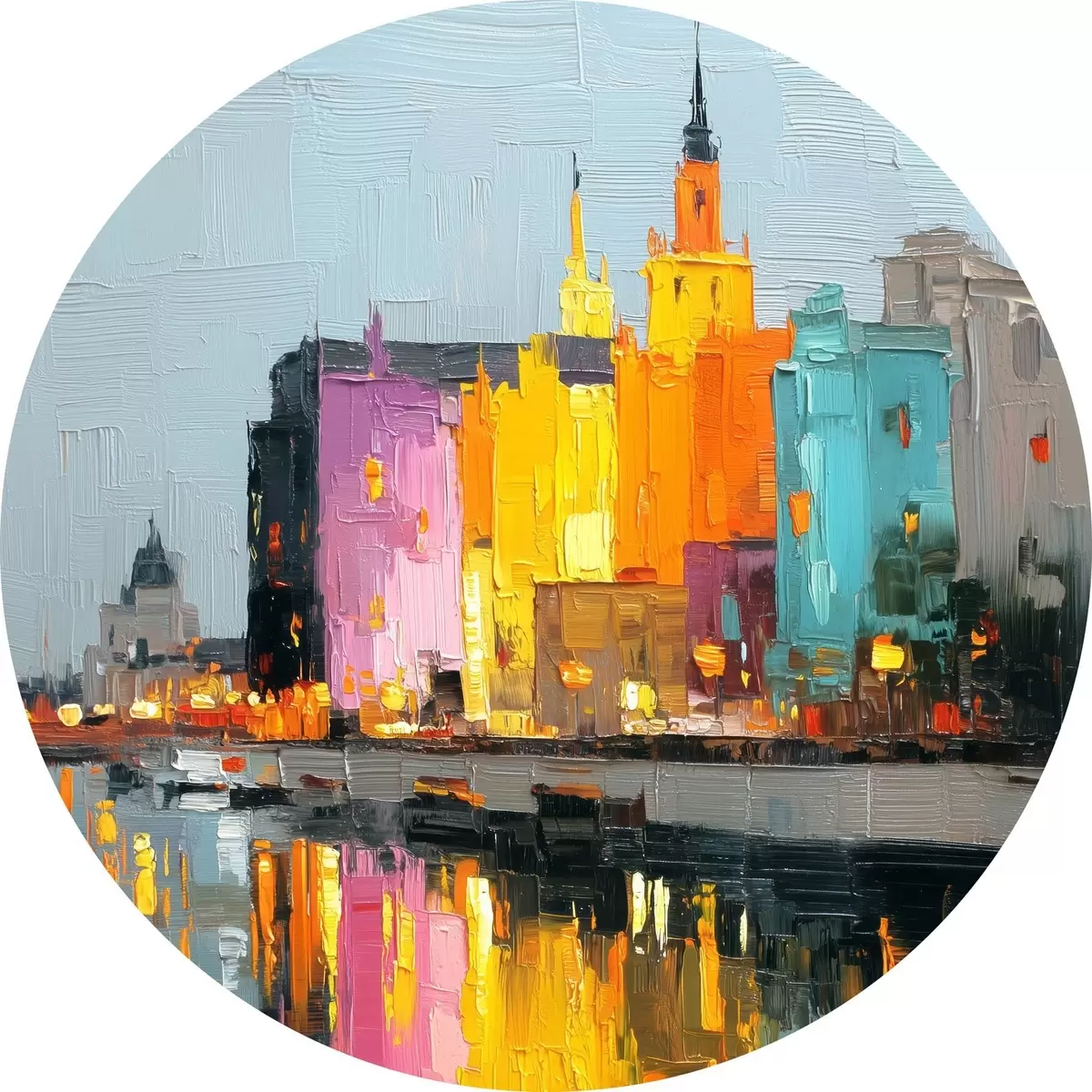 Picturi rotunde Luminile orașului: peisaj vibrant în stil impasto r45242