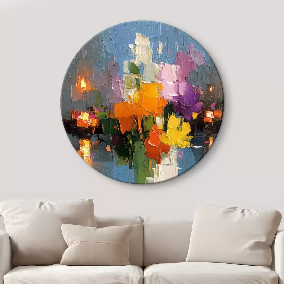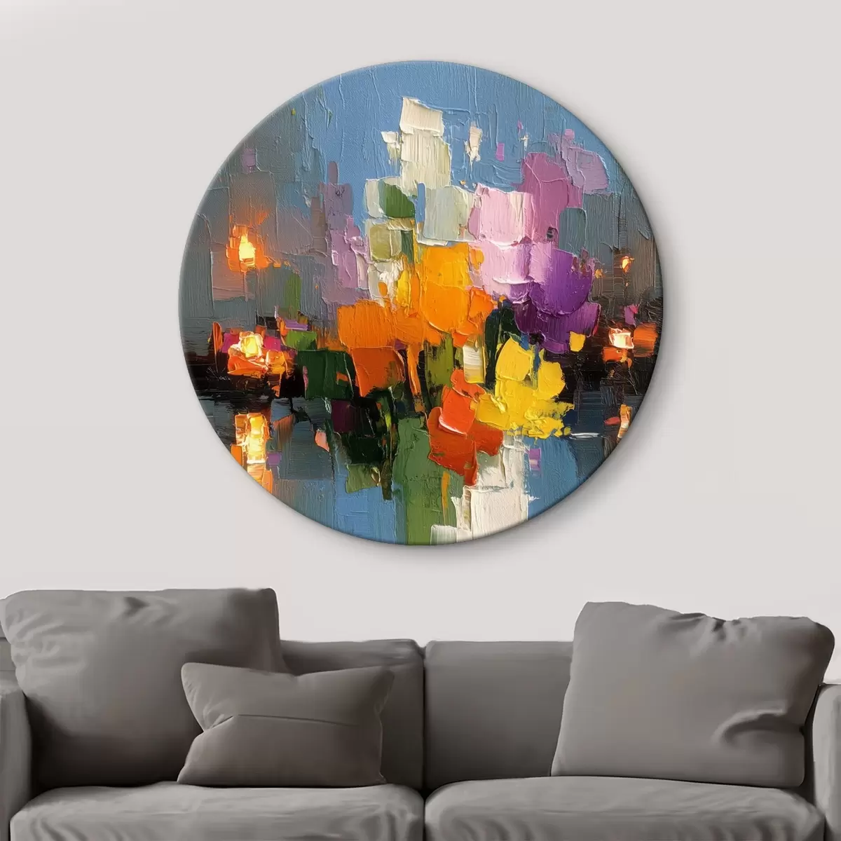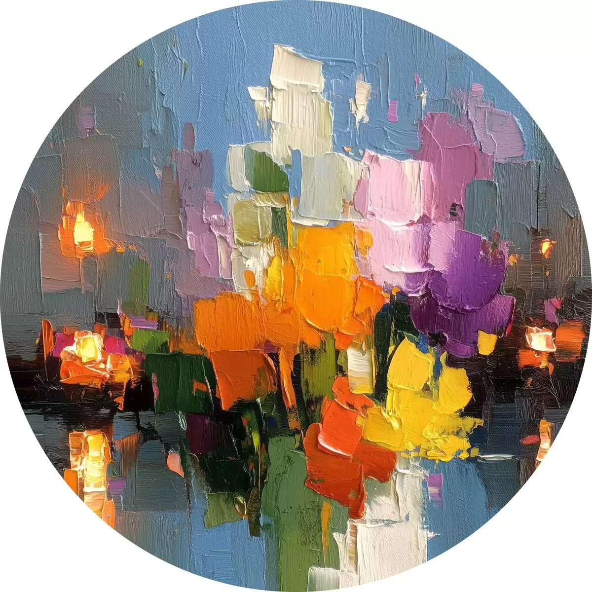 Picturi rotunde Abstracție urbană: reflexia luminii în apă r45243