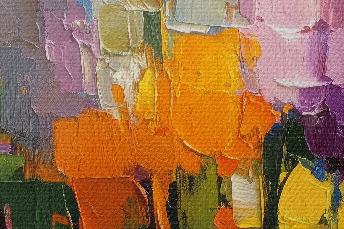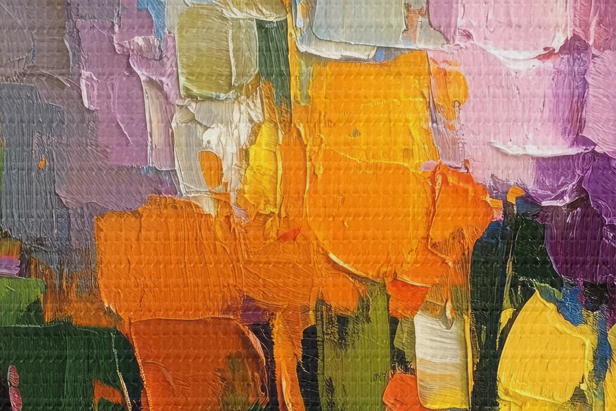 Țesătura fină a firelor de pe această pânză seamănă cu suprafața pânzelor artiștilor profesioniști.