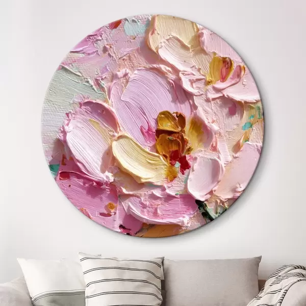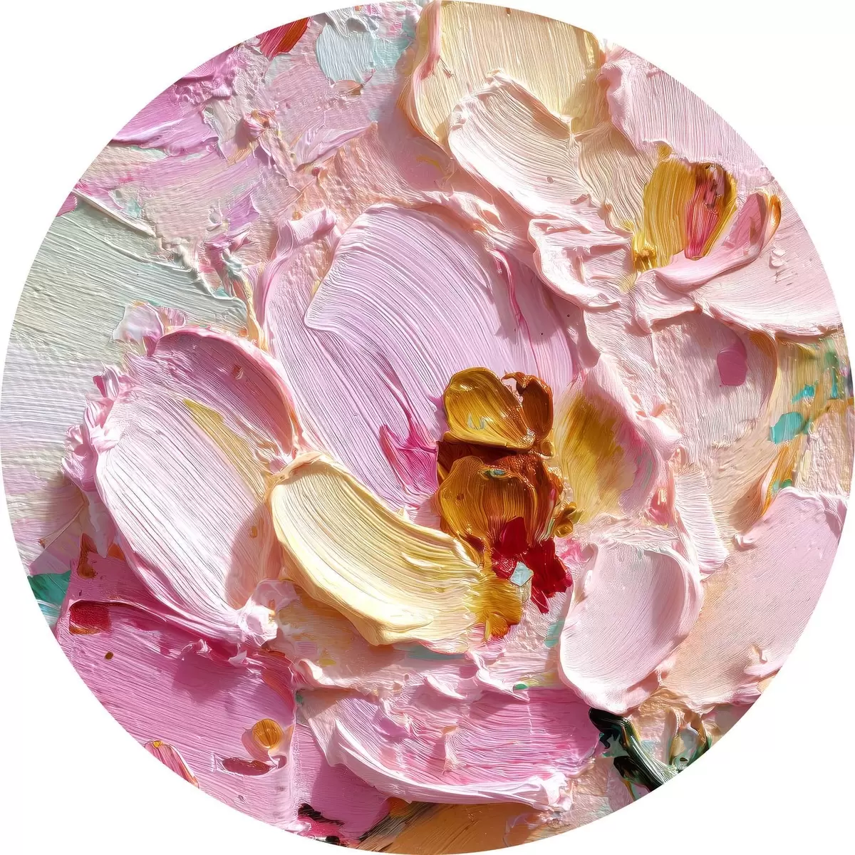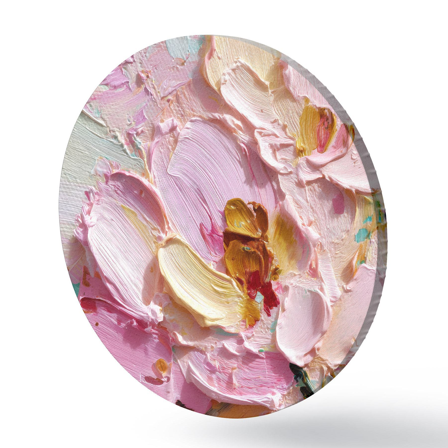 Picturi rotunde Magnolii roz: pictură texturată cu lovituri dimensionale Nr r45249
