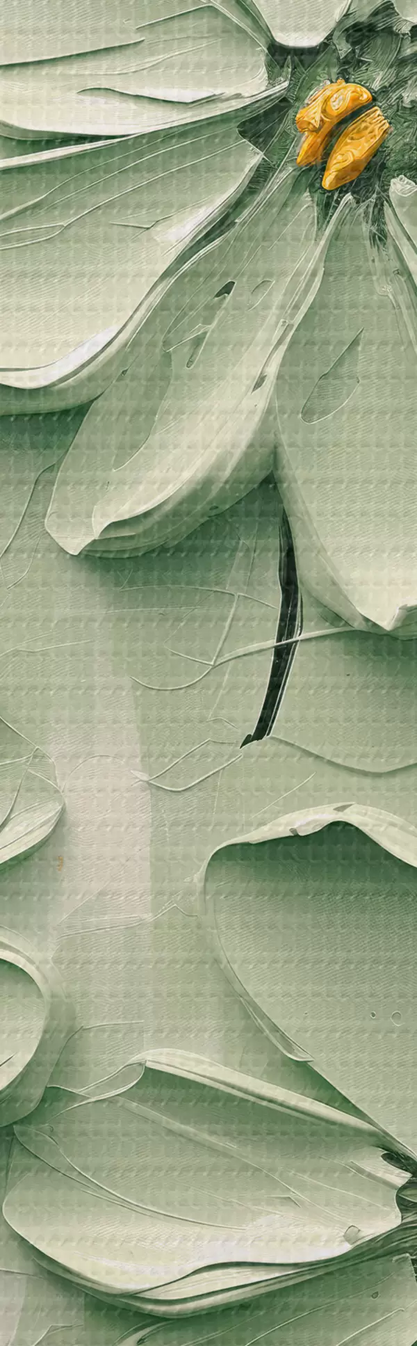 Picturi rotunde Flori verzi cu centre galbene pictate în tușe groase pe un fundal deschis Nr r45265