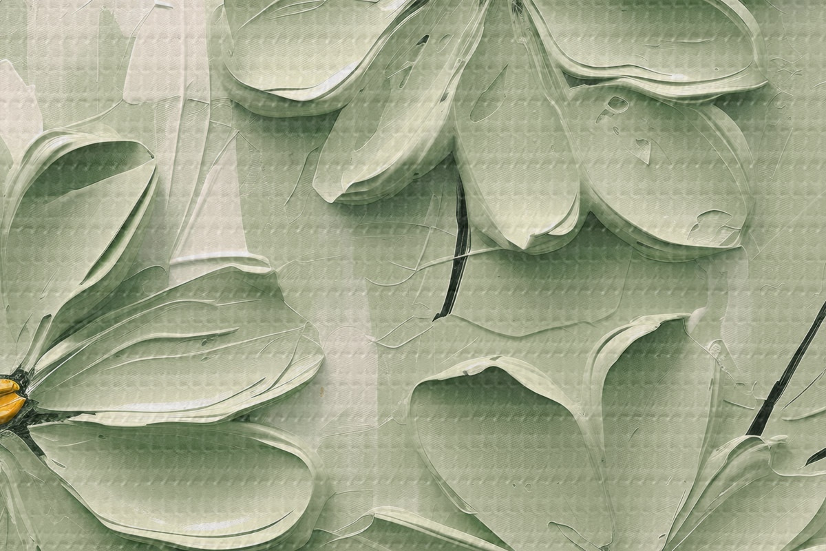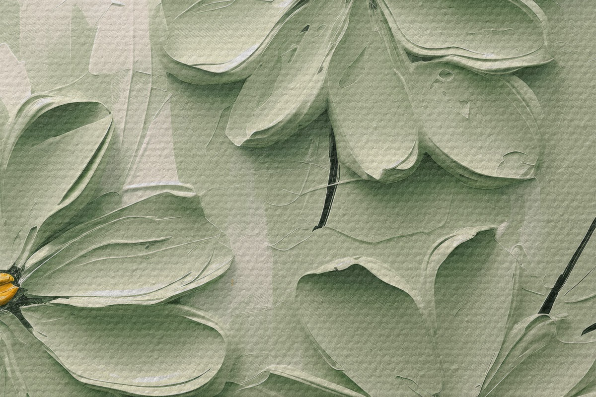 Picturi rotunde Flori verzi cu centre galbene pictate în tușe groase pe un fundal deschis r45265