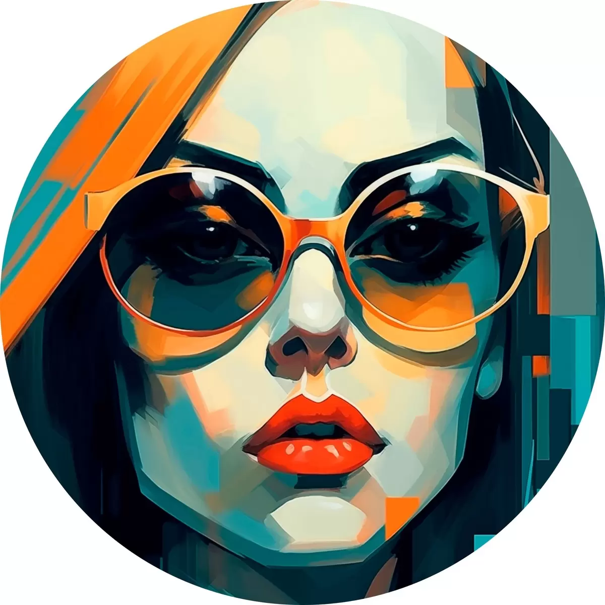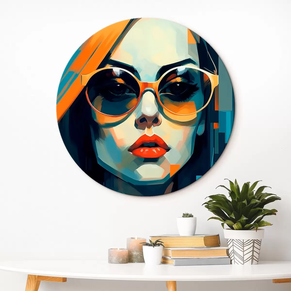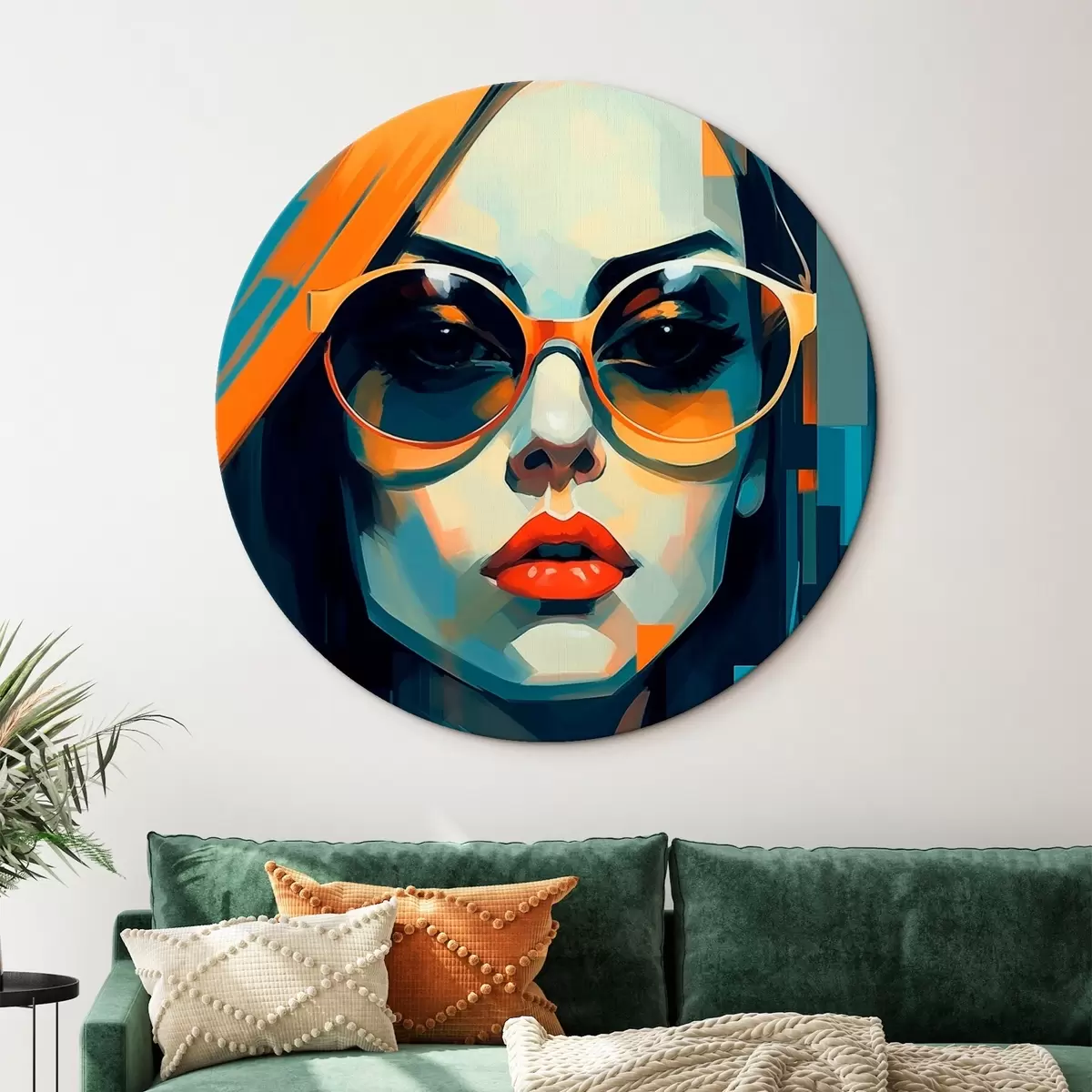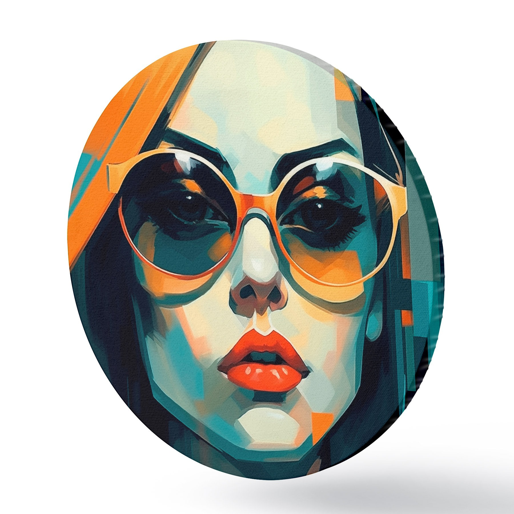 Picturi rotunde Femeie în ochelari de soare în stil pop art digital Nr r45327