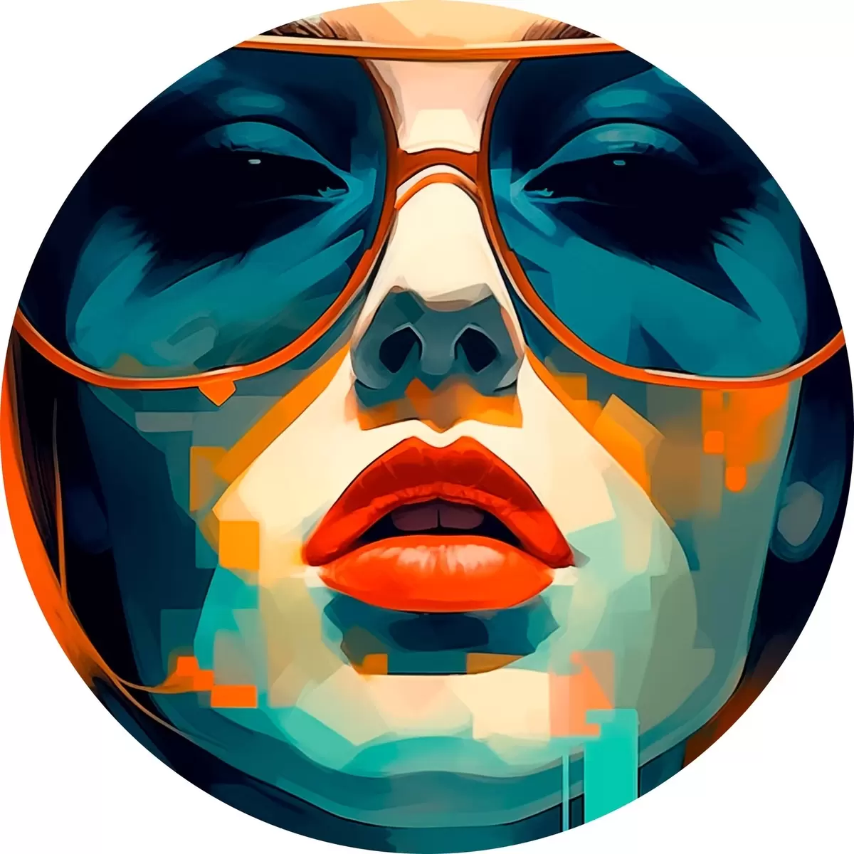 Picturi rotunde Portret feminin abstract în ochelari de soare Nr r45328