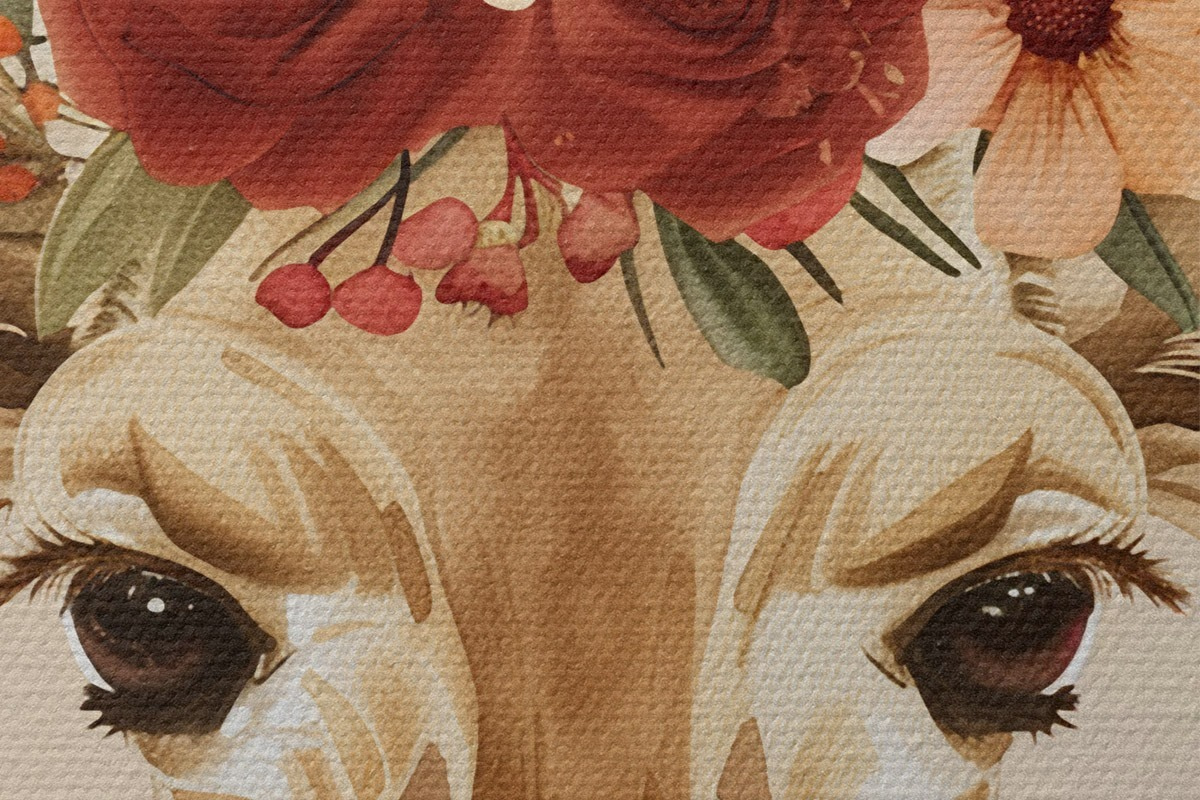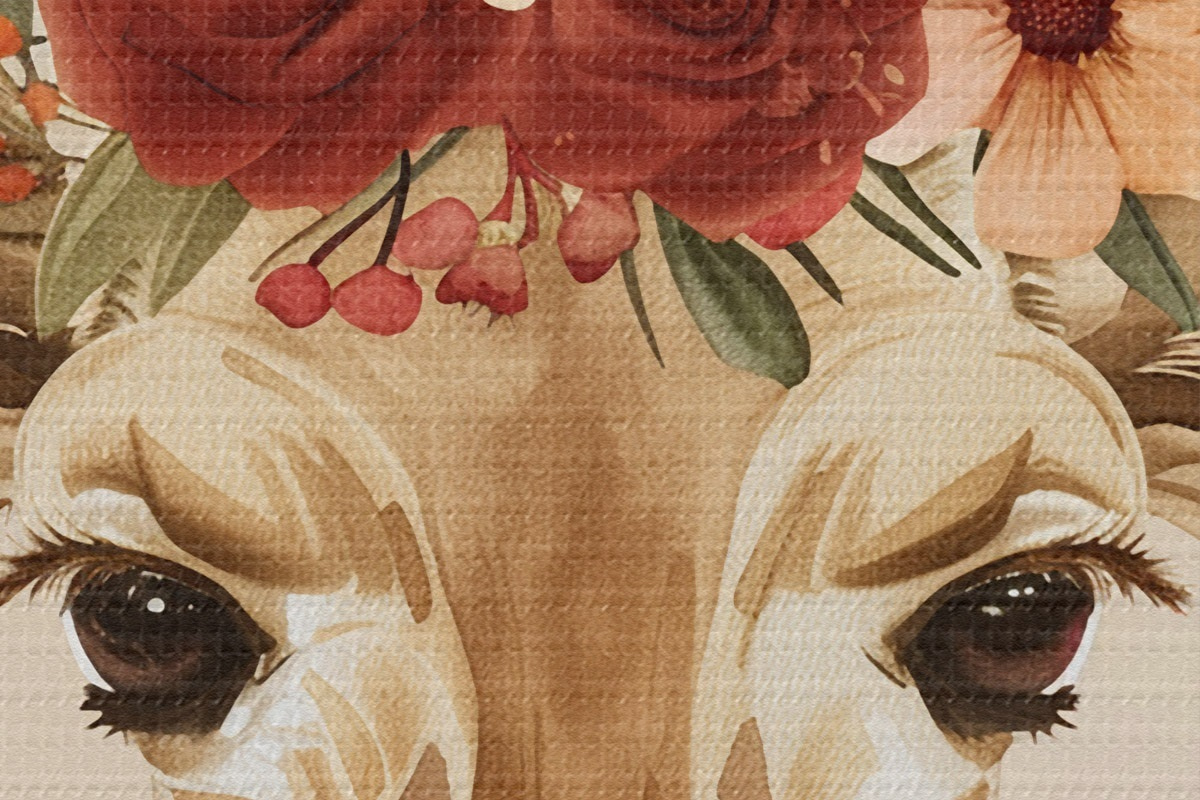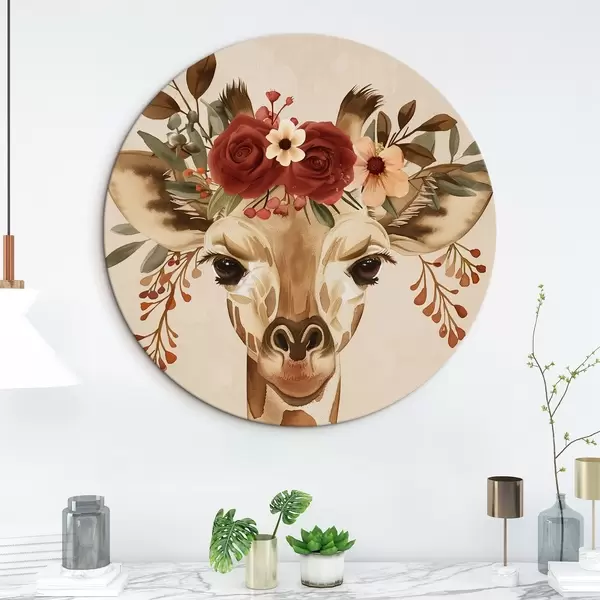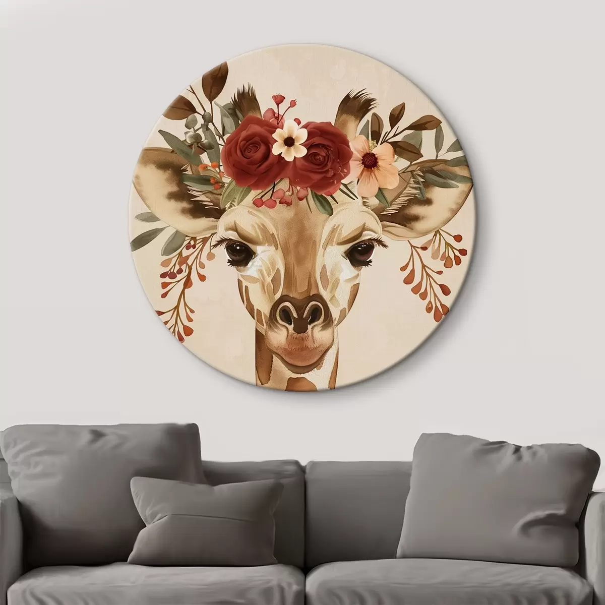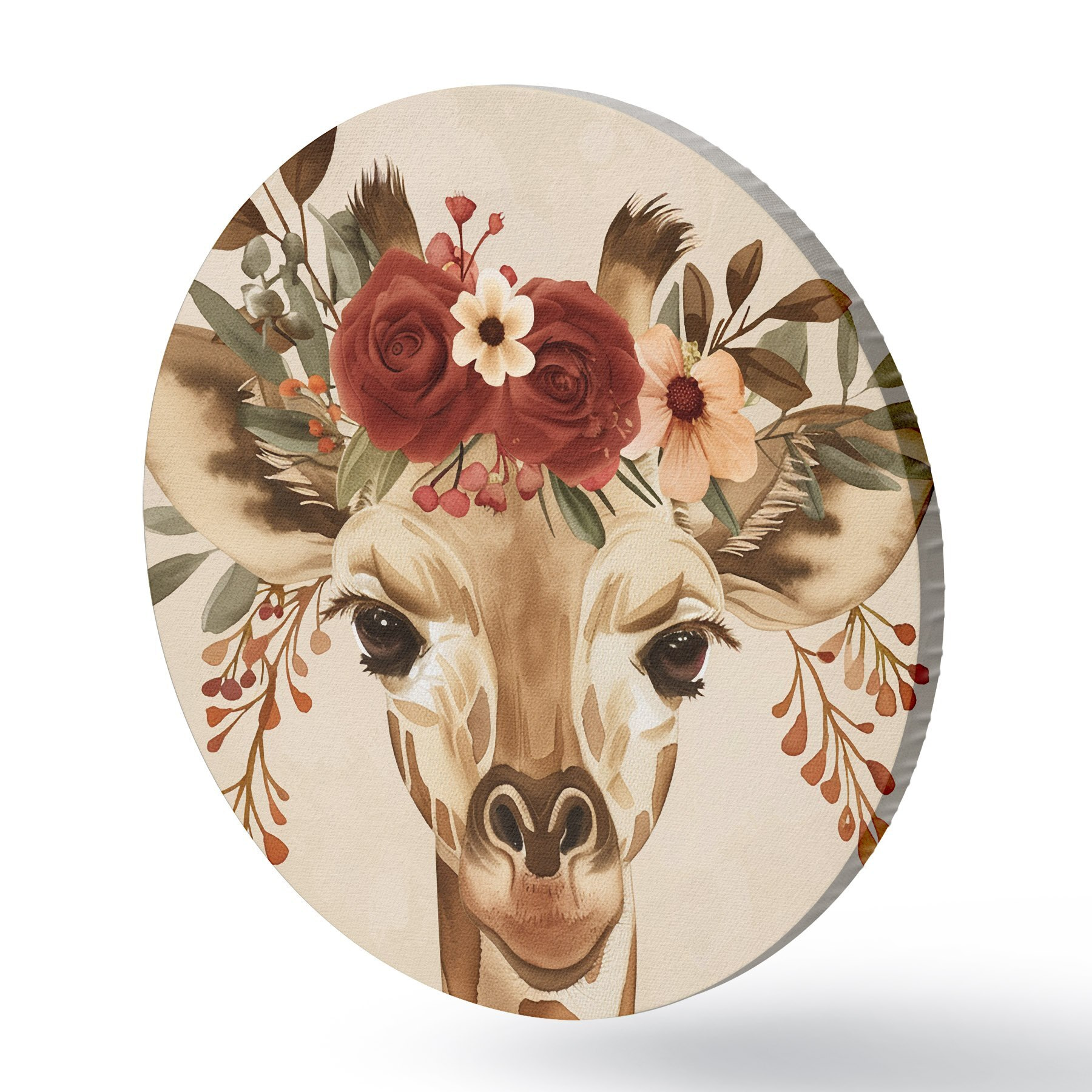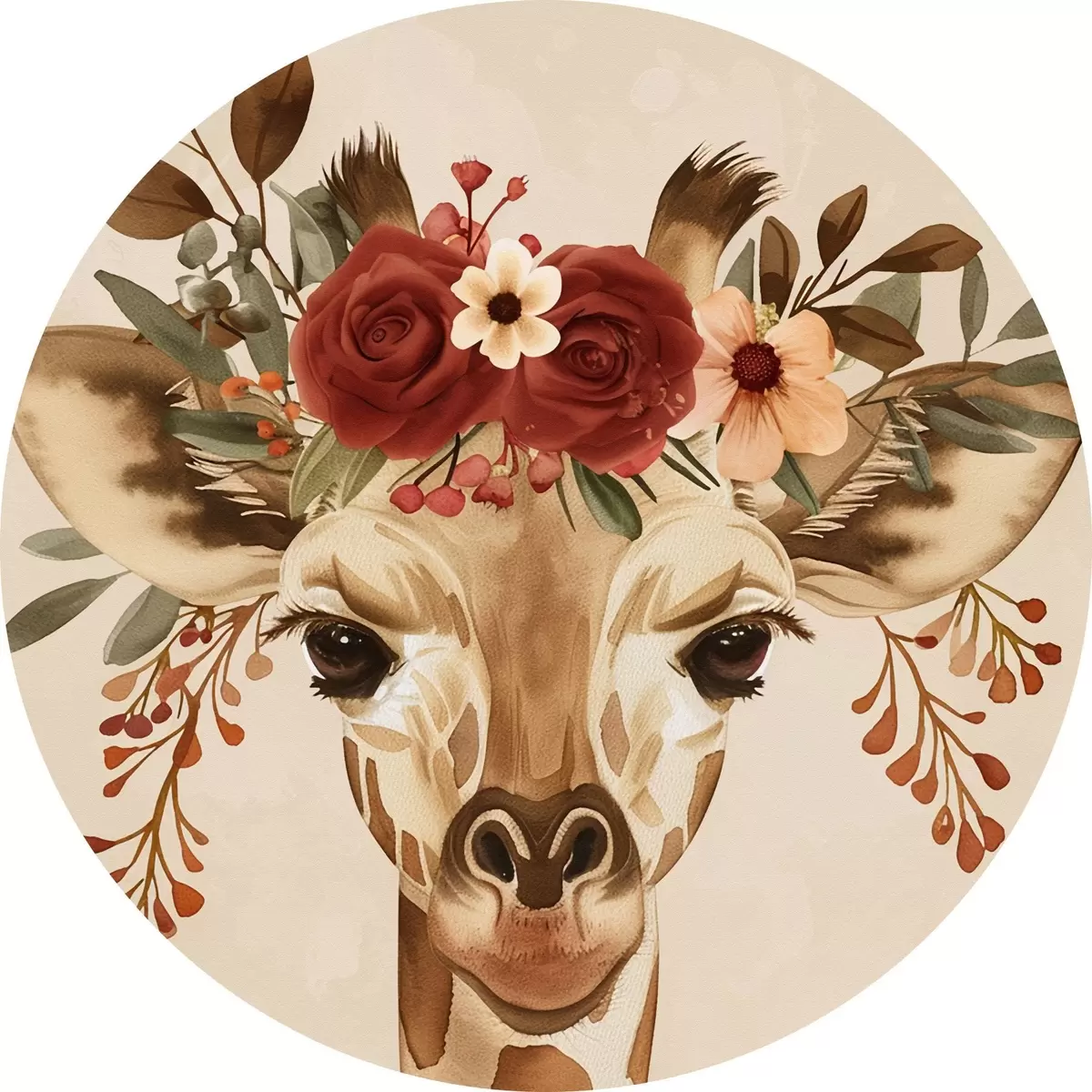 Picturi rotunde Girafă în stil acuarelă cu flori pe cap r45331