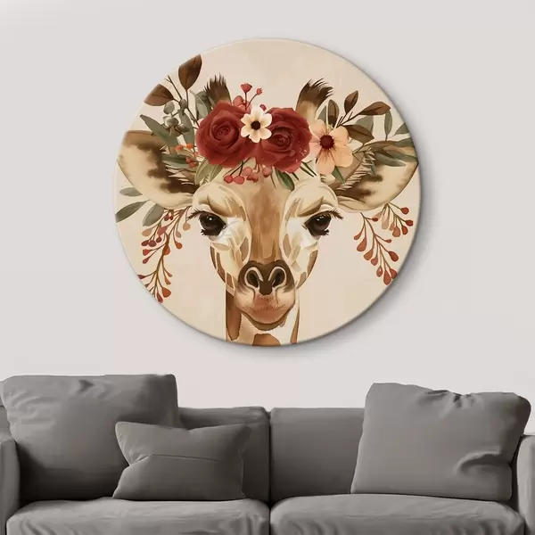 Picturi rotunde Girafă în stil acuarelă cu flori pe cap Nr r45331