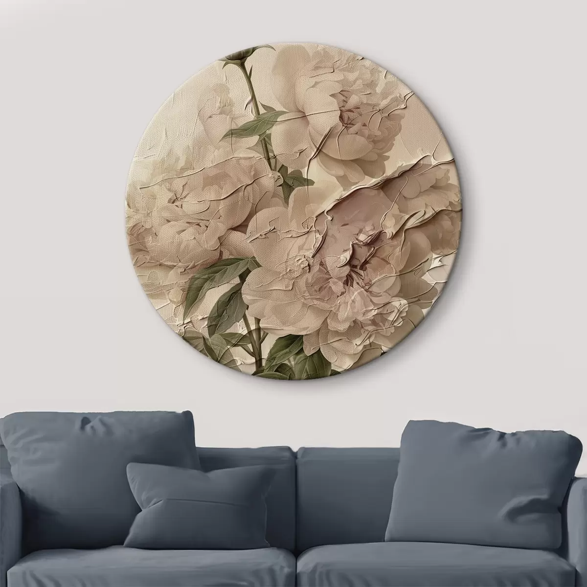 Picturi rotunde Buchet luxuriant de bujori pe un fundal deschis r45337
