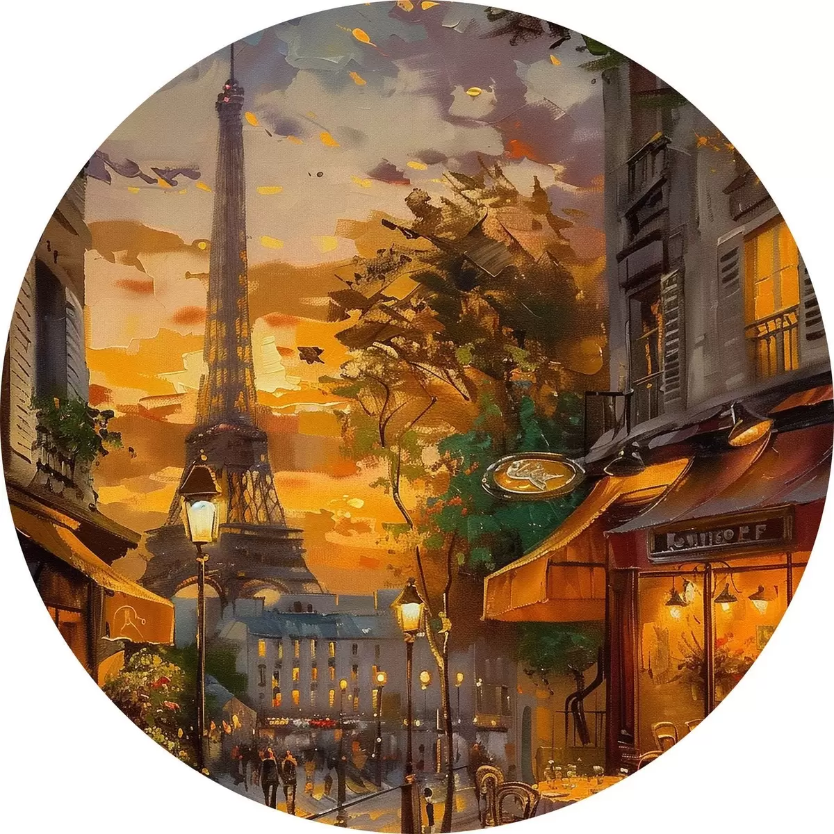Picturi rotunde Stradă în Paris, pictură în ulei efect Nr r45340
