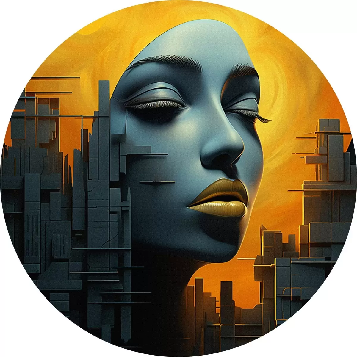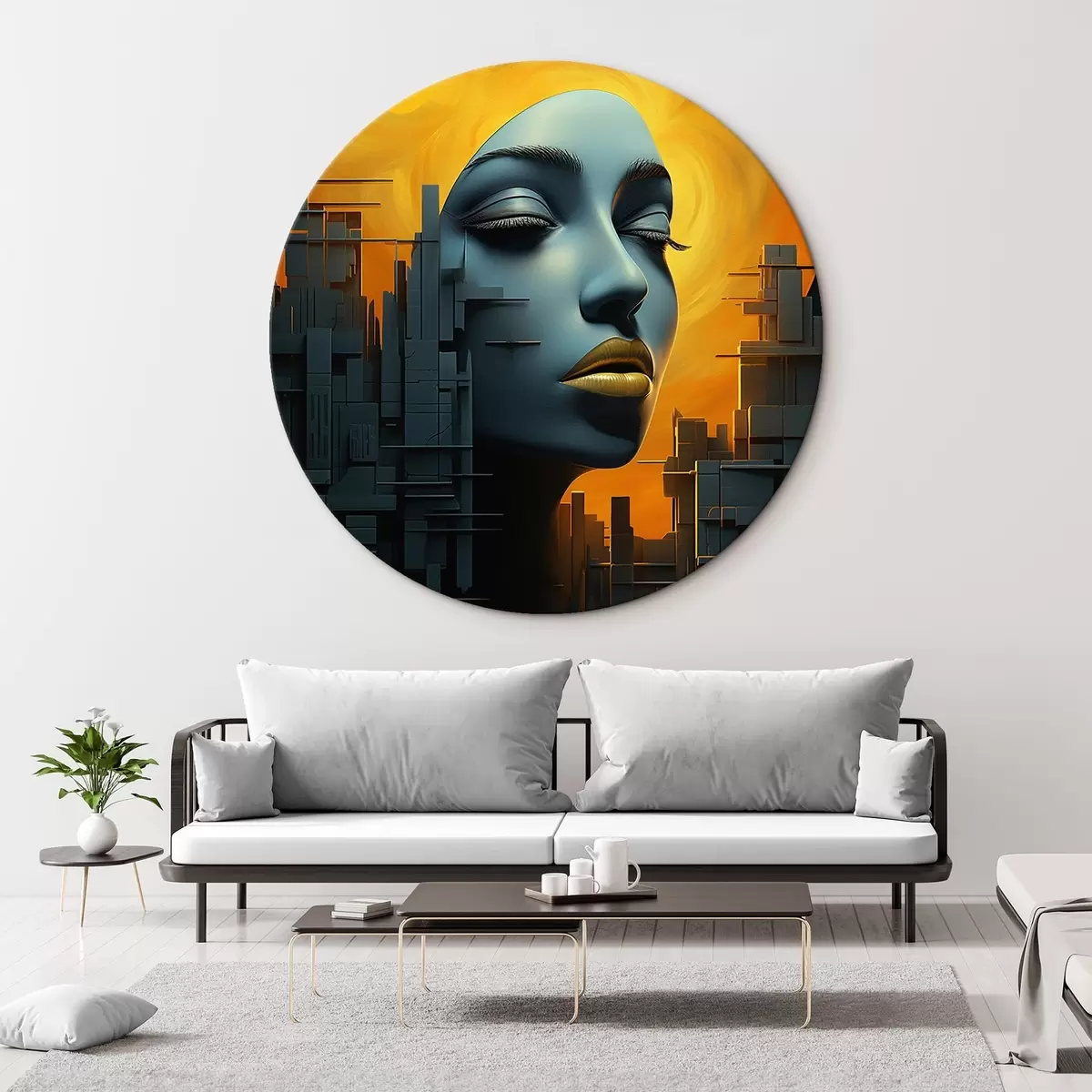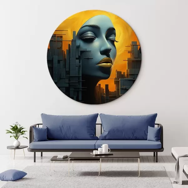 Picturi rotunde Oameni, fata fata lui oraș pe un fundal abstract Nr r45342