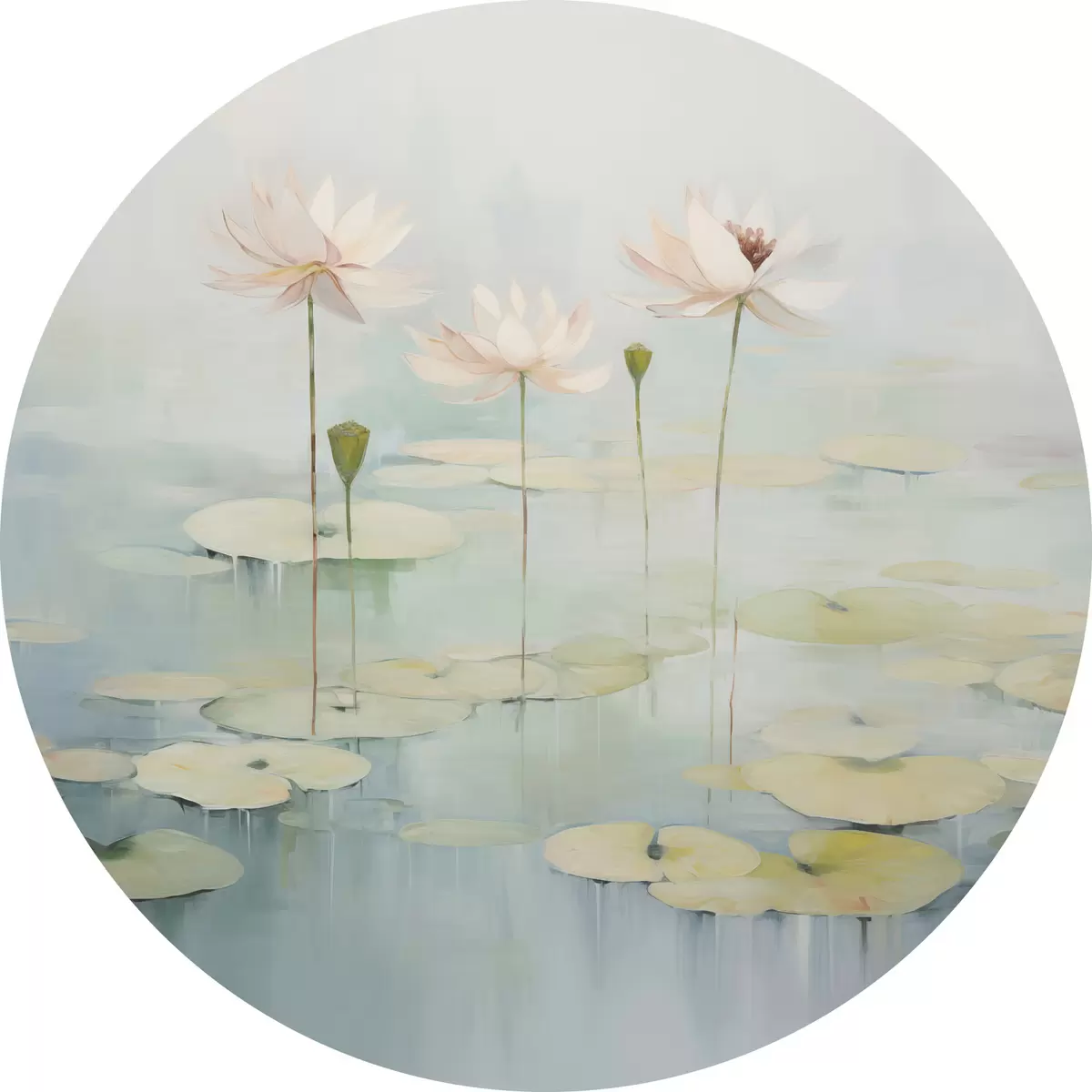 Picturi rotunde Frunze și flori de lotus pe iaz Nr r45350