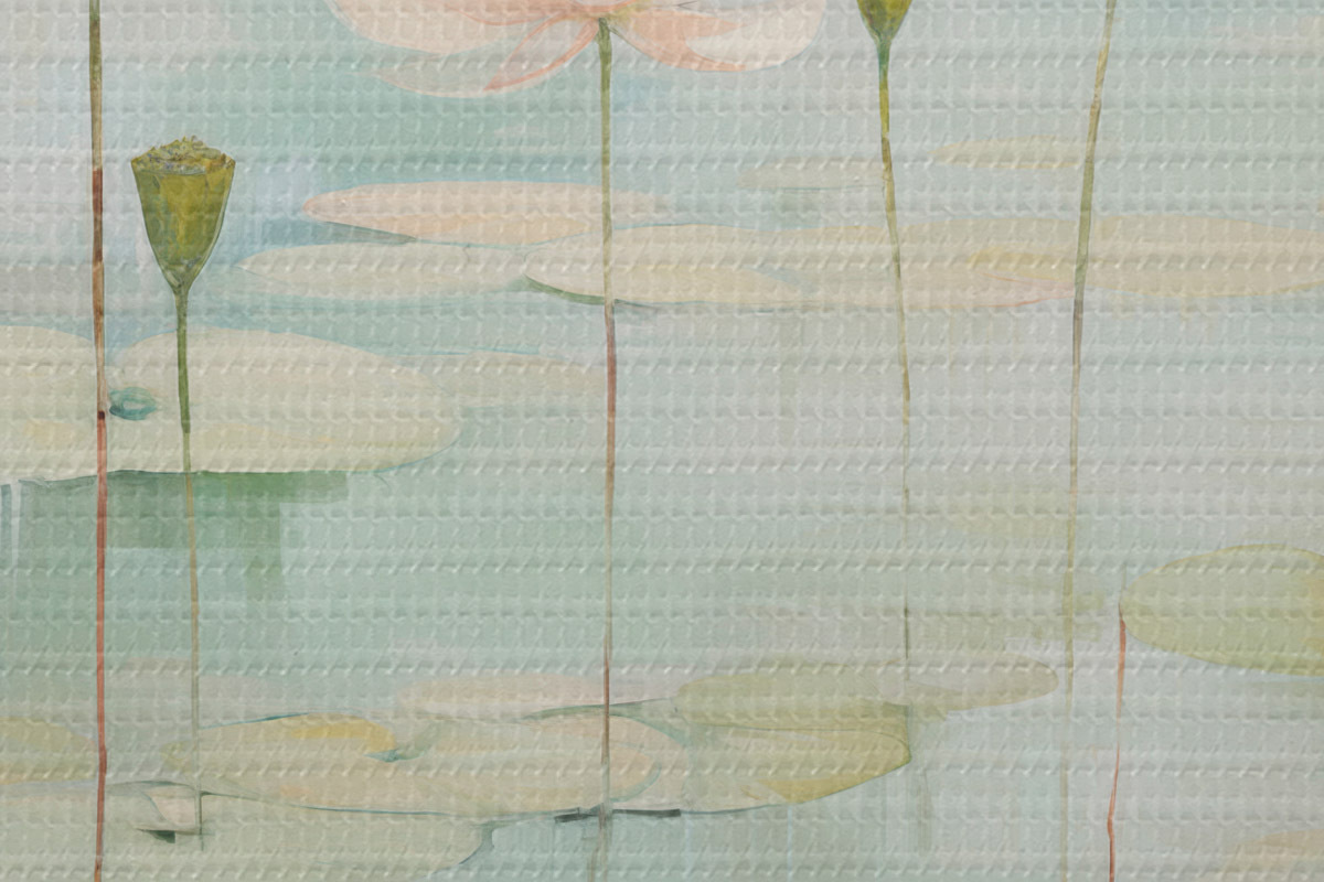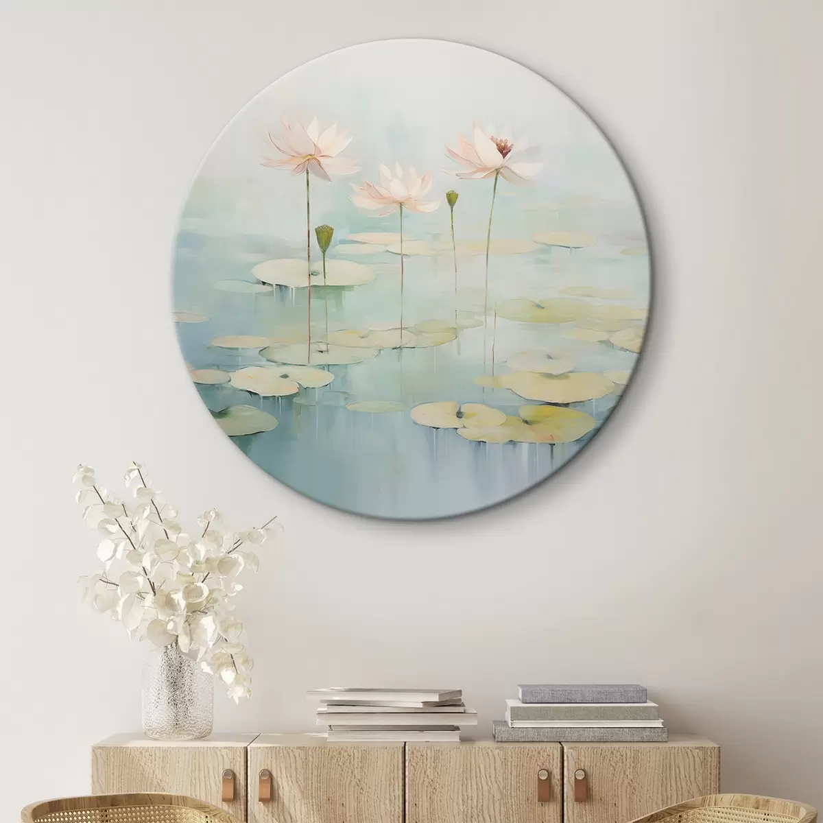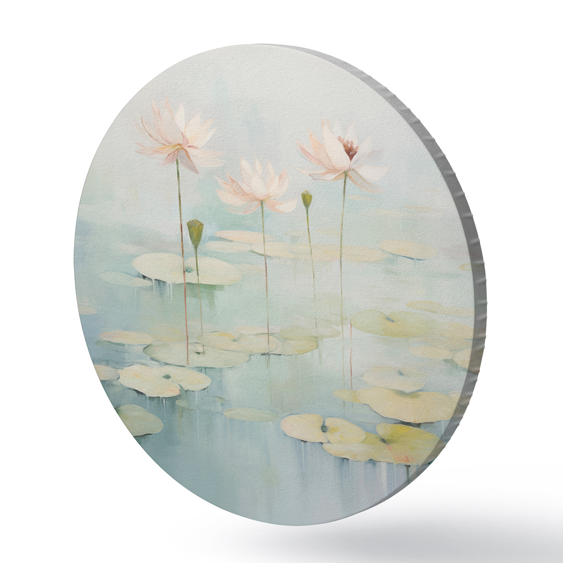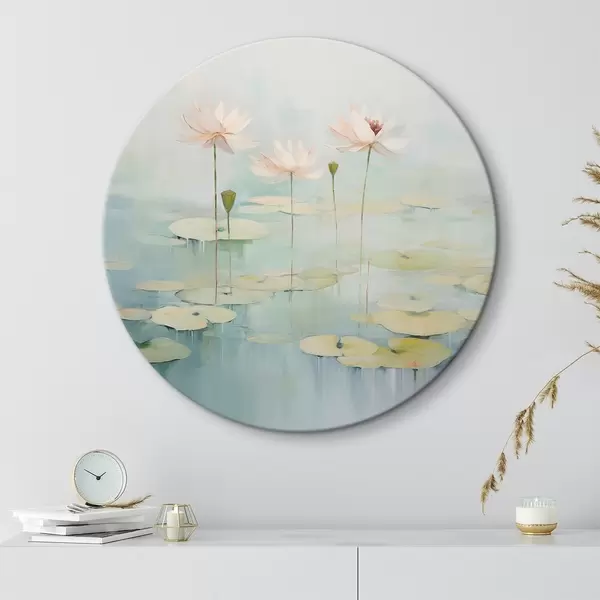 Picturi rotunde Frunze și flori de lotus pe iaz r45350