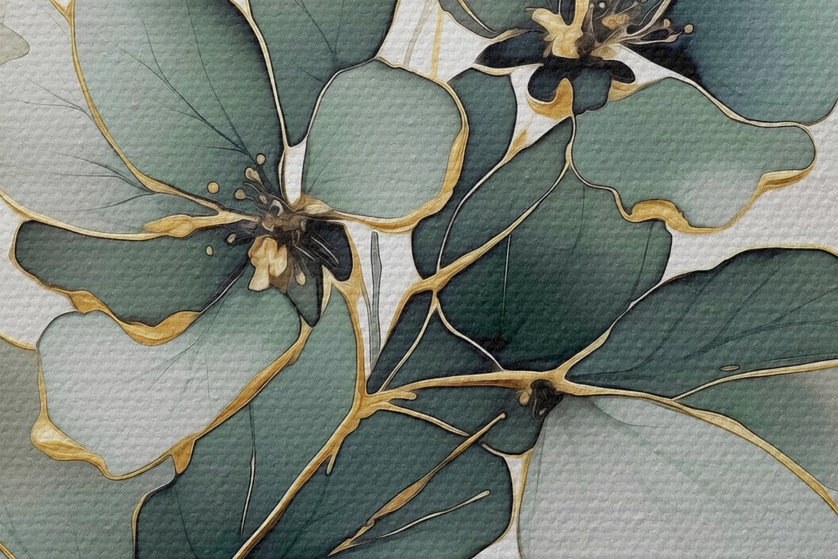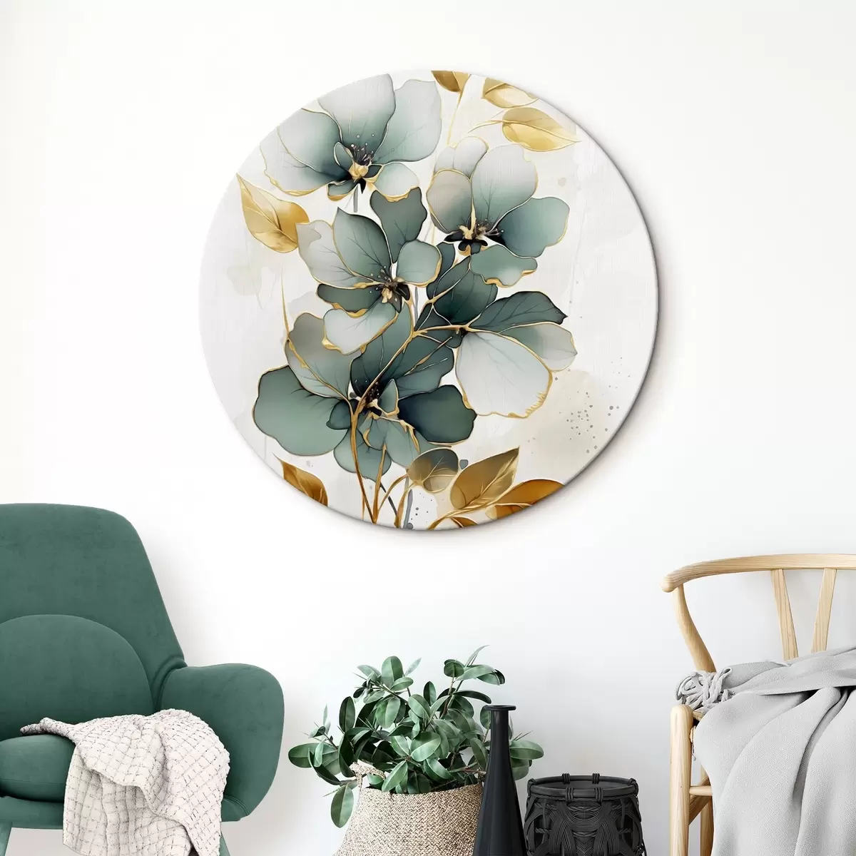 Picturi rotunde Ramură abstractă cu flori și frunze r45367