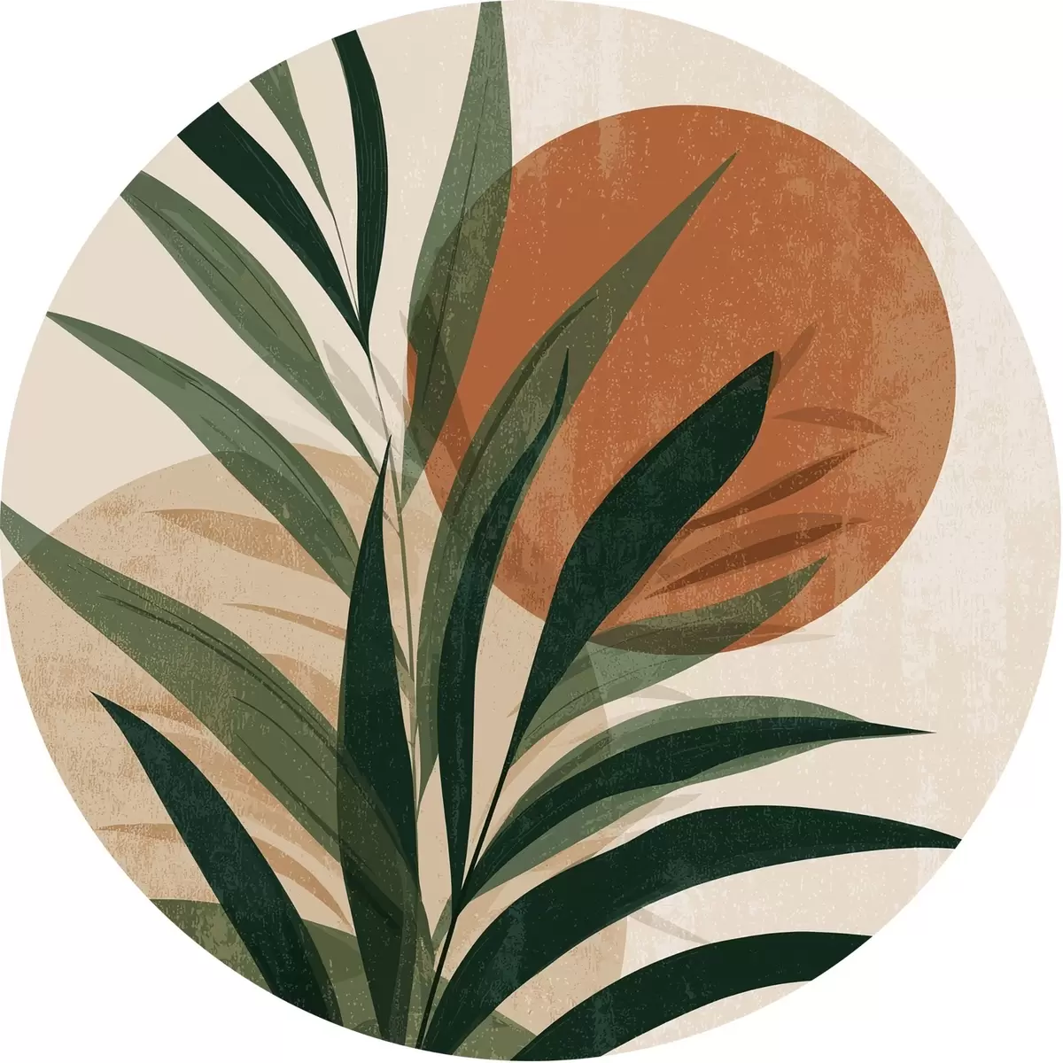 Picturi rotunde Frunze verzi și apus de soare Nr r45394