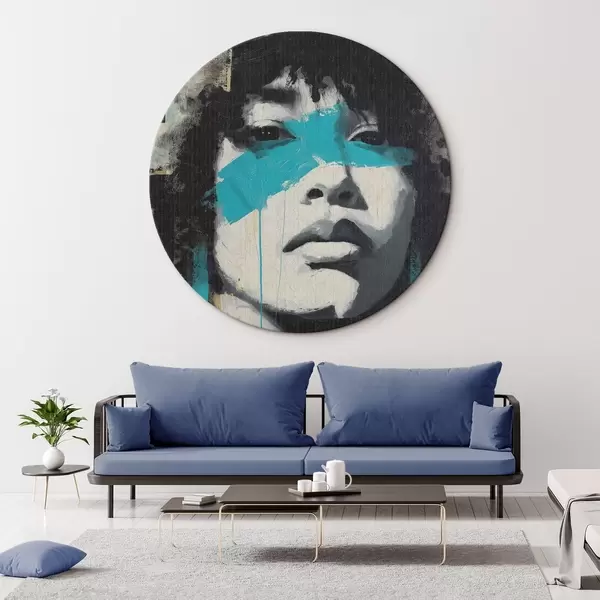 Picturi rotunde Portret în media mixtă cu fragmente de culori și texturi r45417