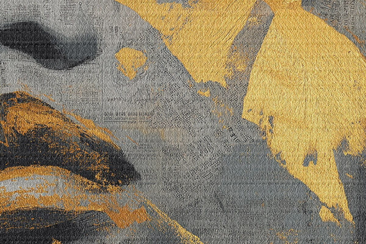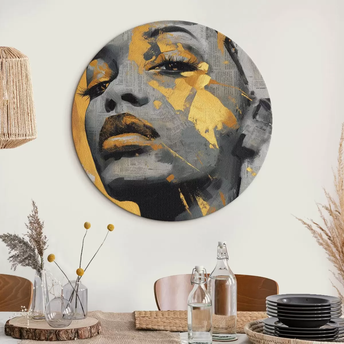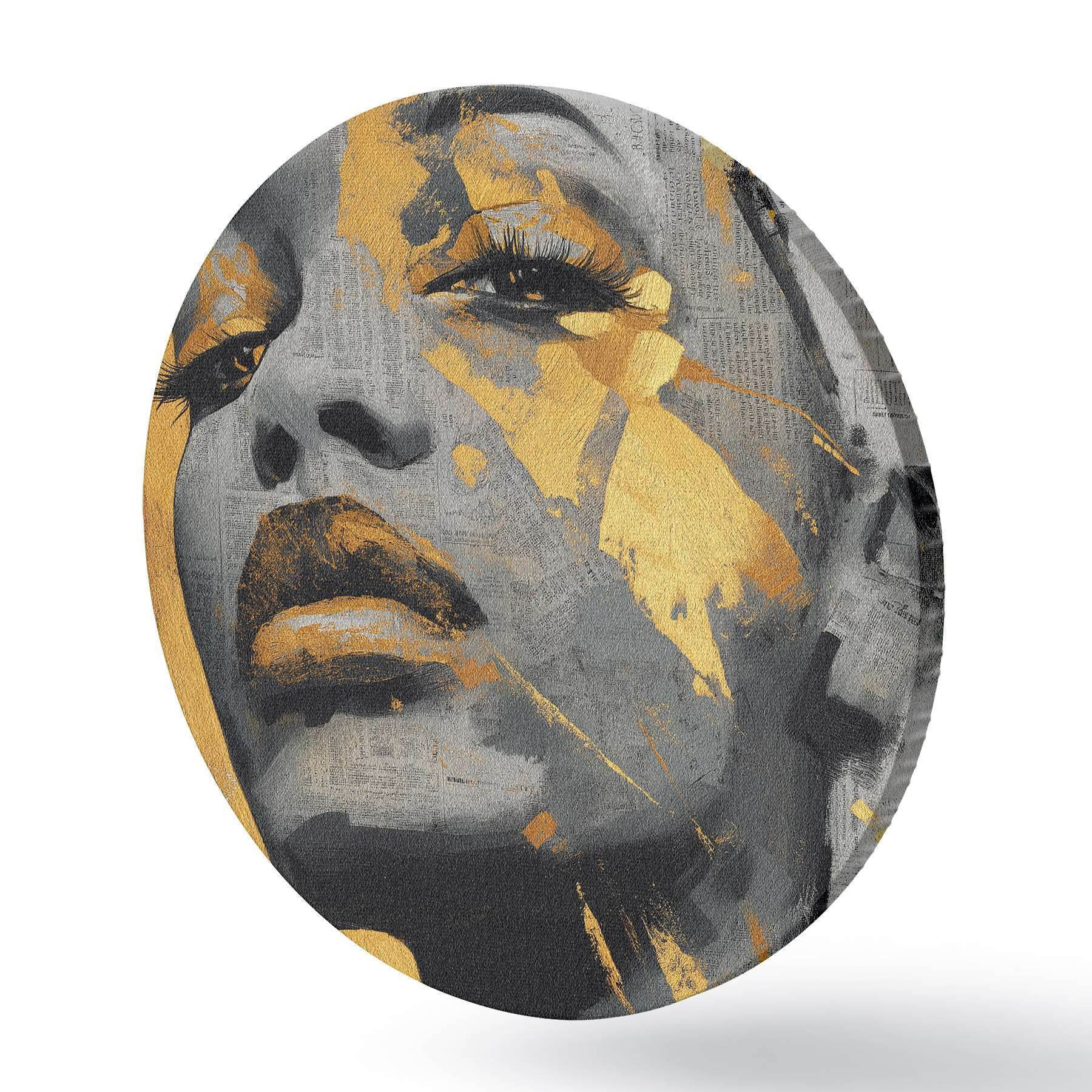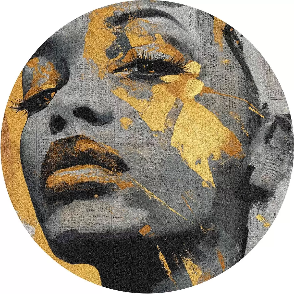 Picturi rotunde Portret în media mixtă cu fragmente de ziar și tușe decorative Nr r45419