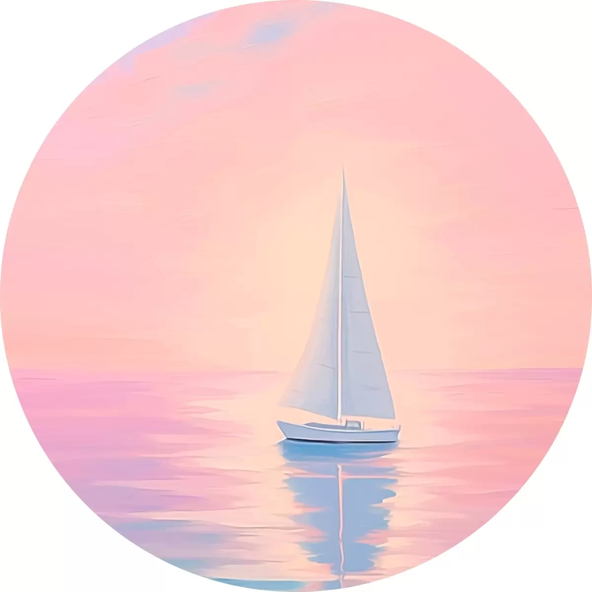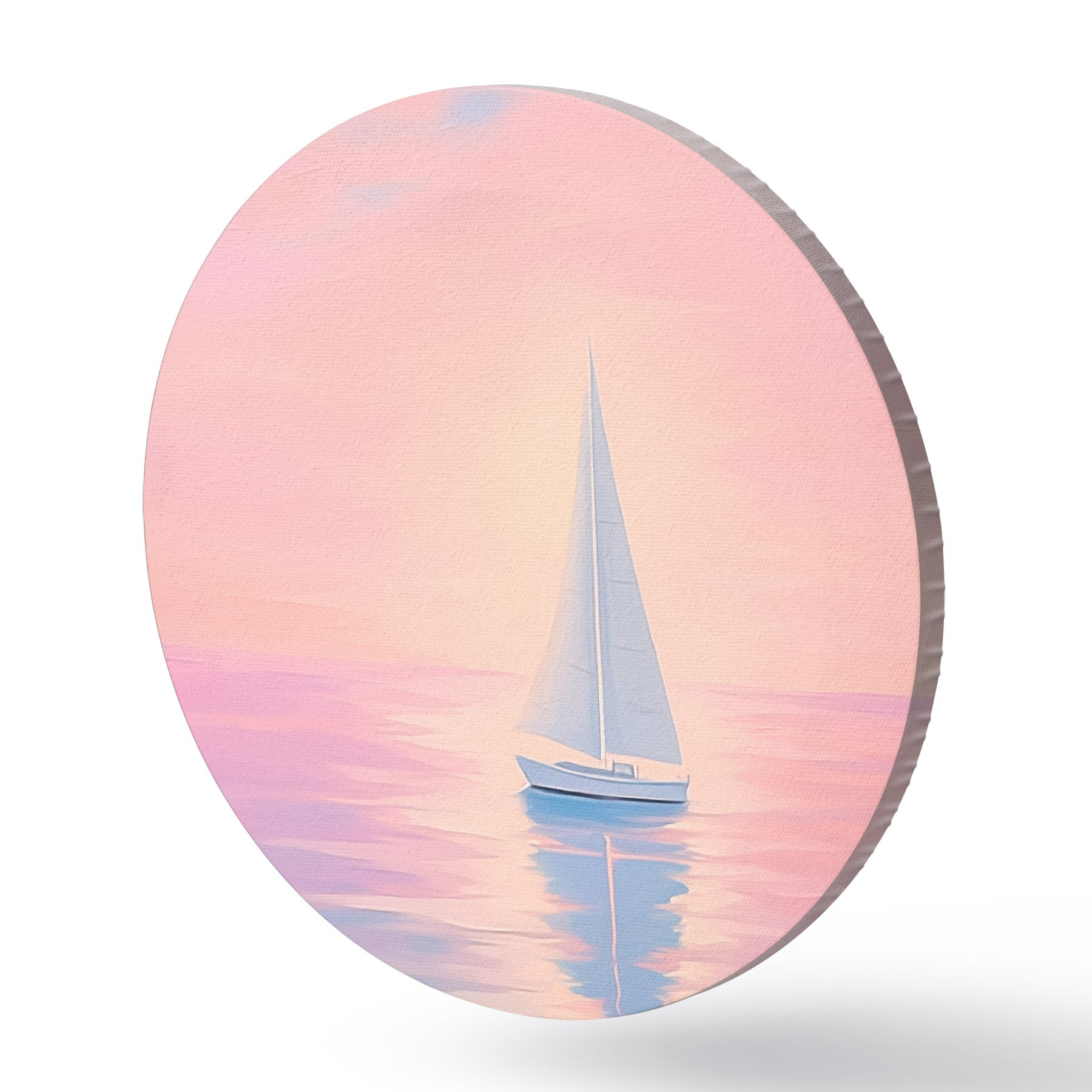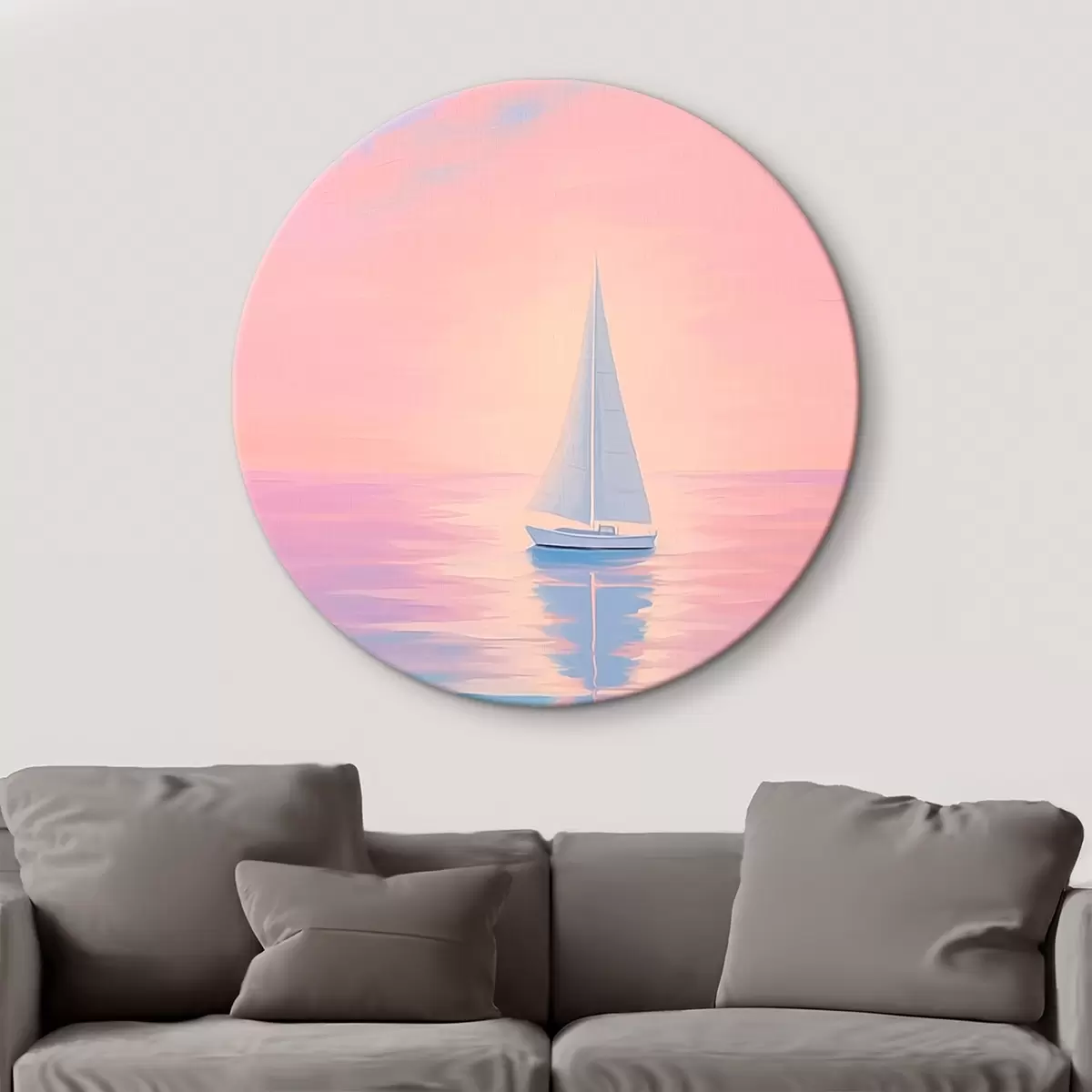 Picturi rotunde Barcă cu vele pe mare la apus de soare Nr r45428