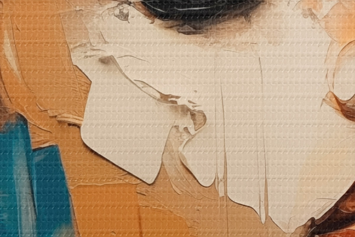 Țesătura fină a firelor de pe această pânză seamănă cu suprafața pânzelor artiștilor profesioniști.