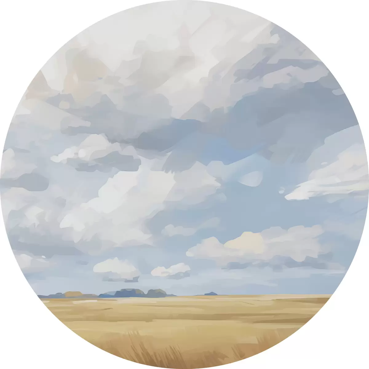Picturi rotunde Câmp de grâu pe cerul cu nori uriași r45454