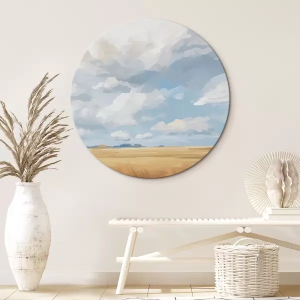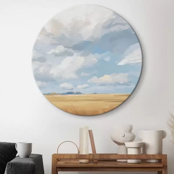 Picturi rotunde Câmp de grâu pe cerul cu nori uriași Nr r45454