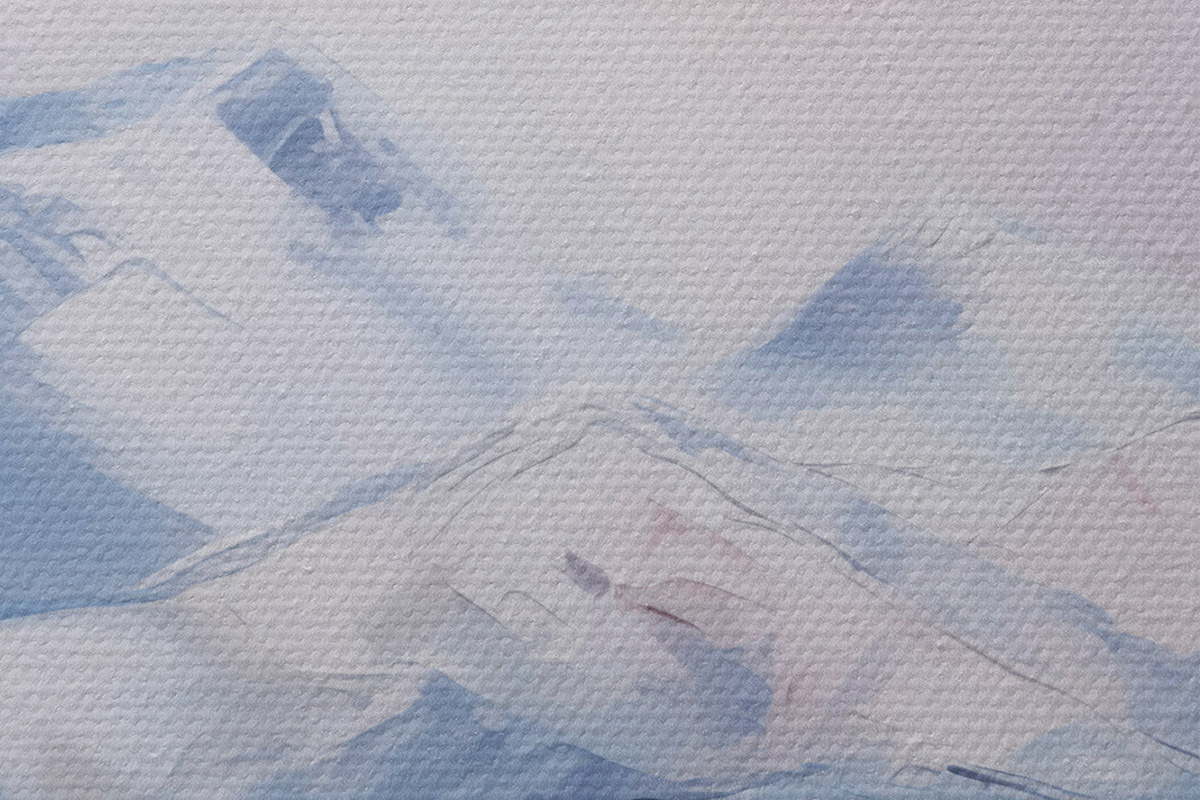 Țesătura fină a firelor de pe această pânză seamănă cu suprafața pânzelor artiștilor profesioniști.