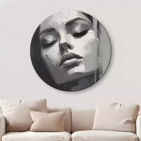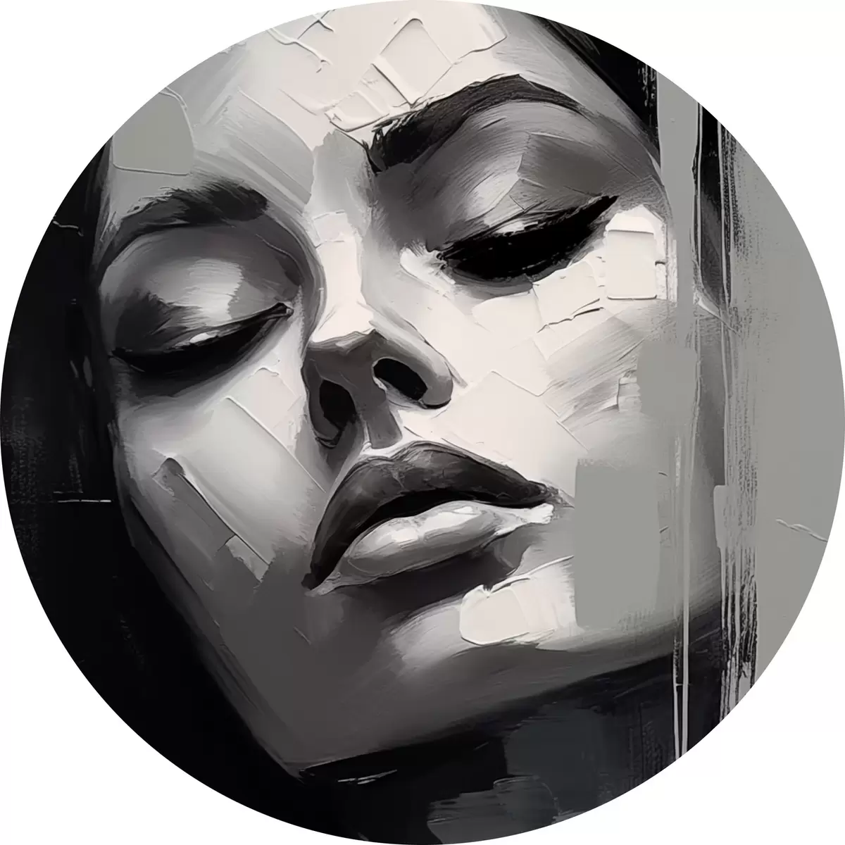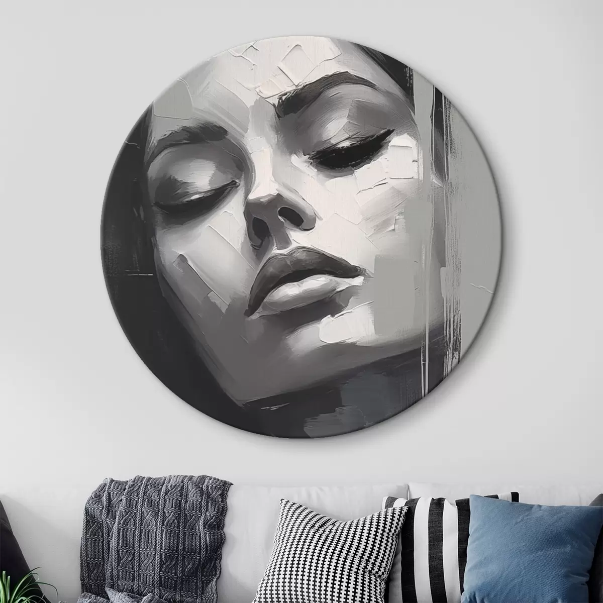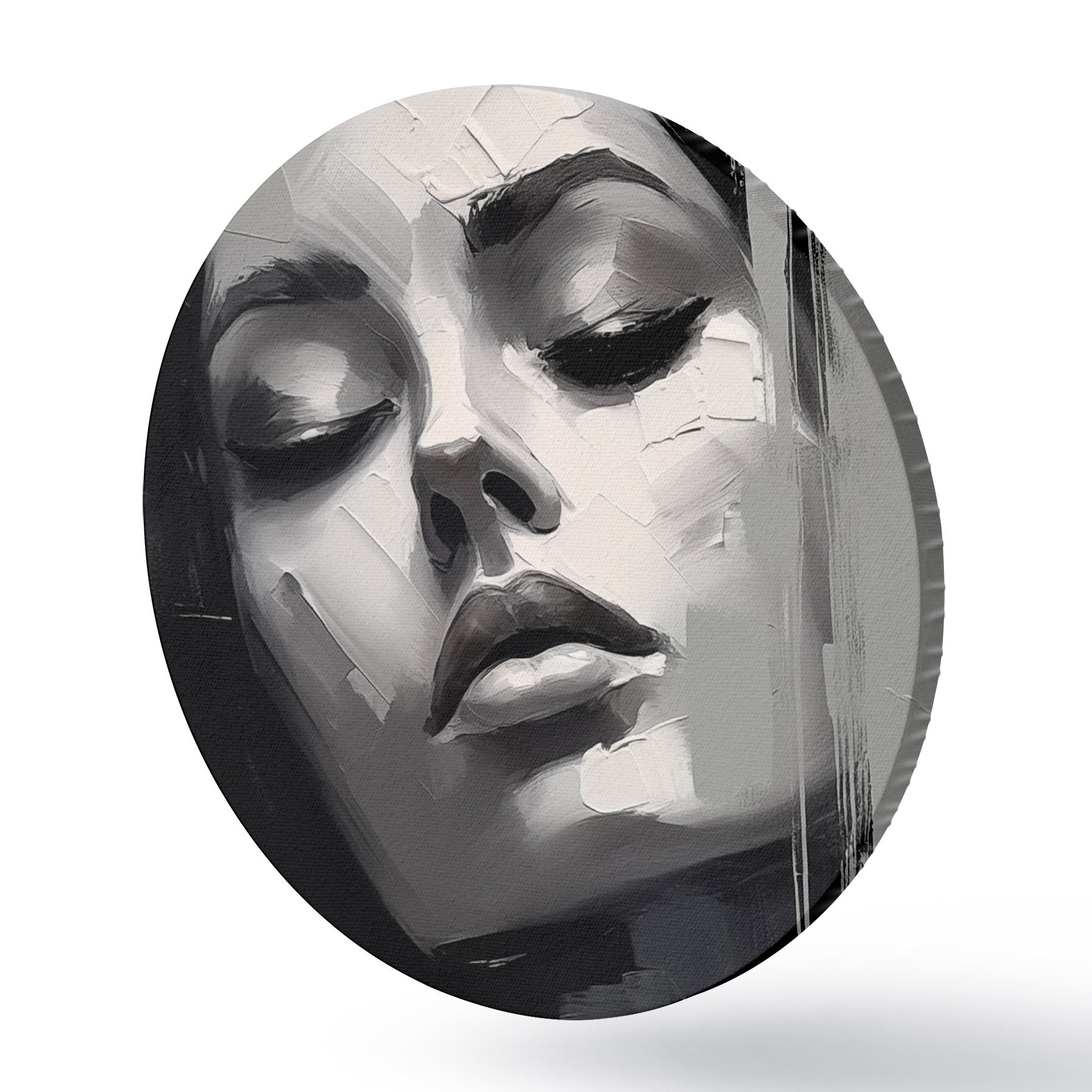 Picturi rotunde Portret alb-negru al unei femei cu ochii închiși Nr r45479