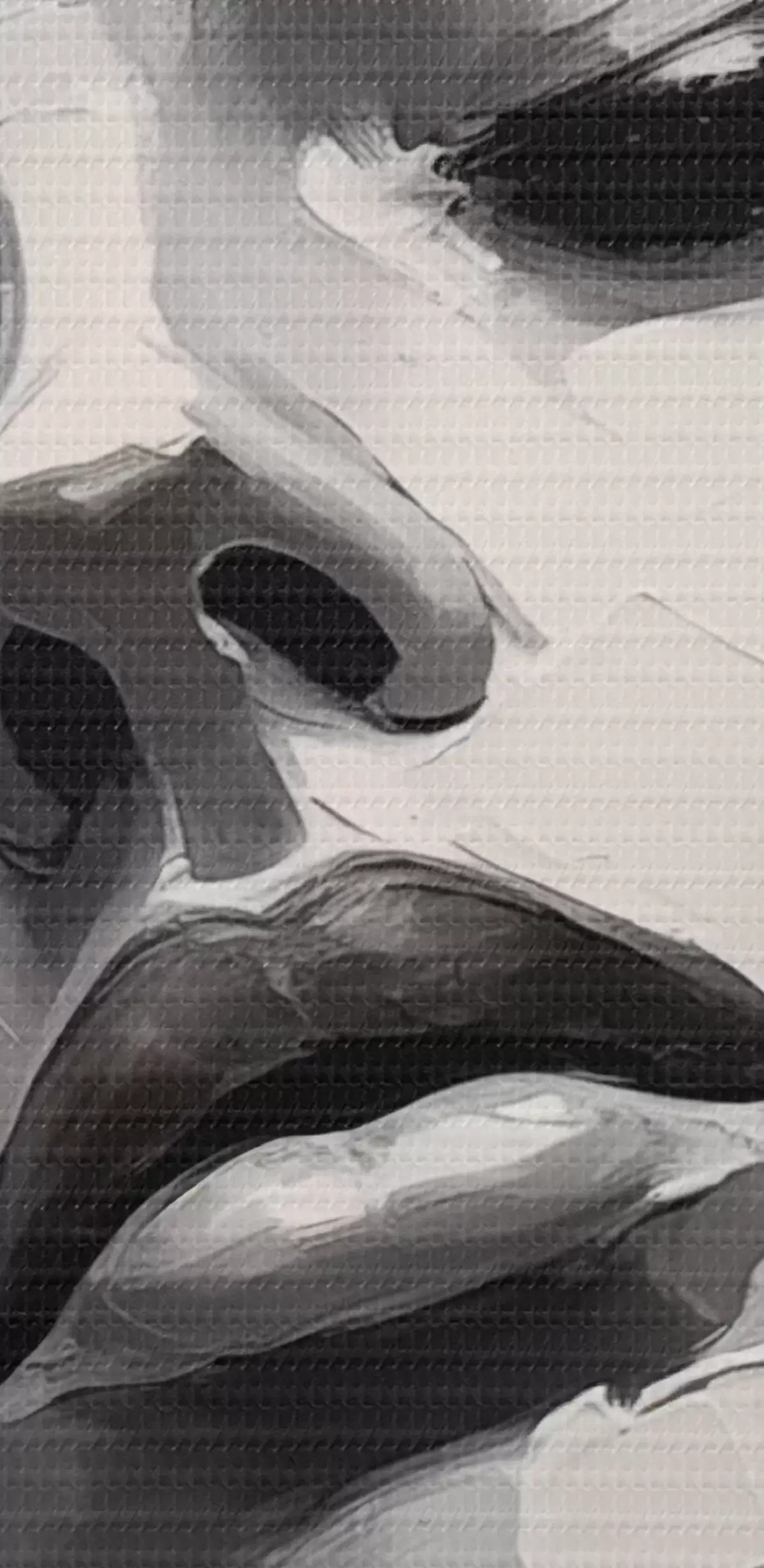 Țesătura fină a firelor de pe această pânză seamănă cu suprafața pânzelor artiștilor profesioniști.