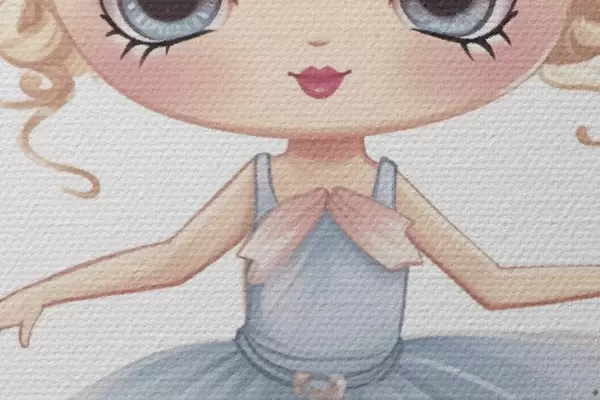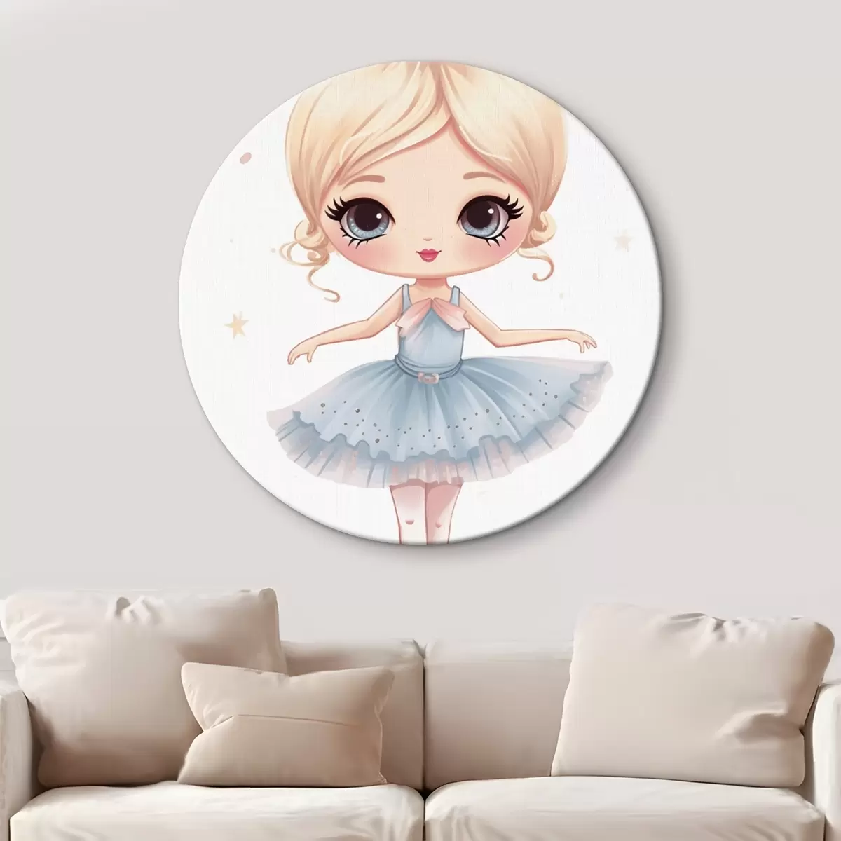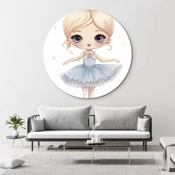 Picturi rotunde Păpușă balerină într-o rochie albastră cu o fundă r45481