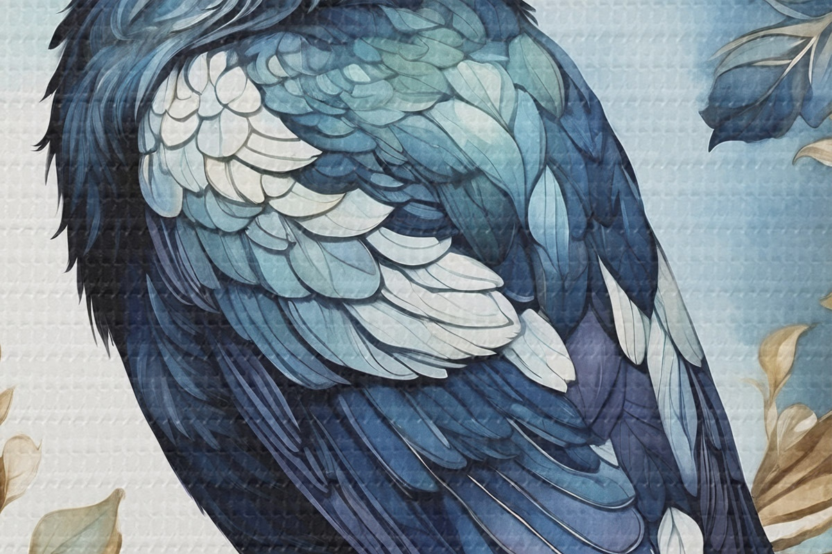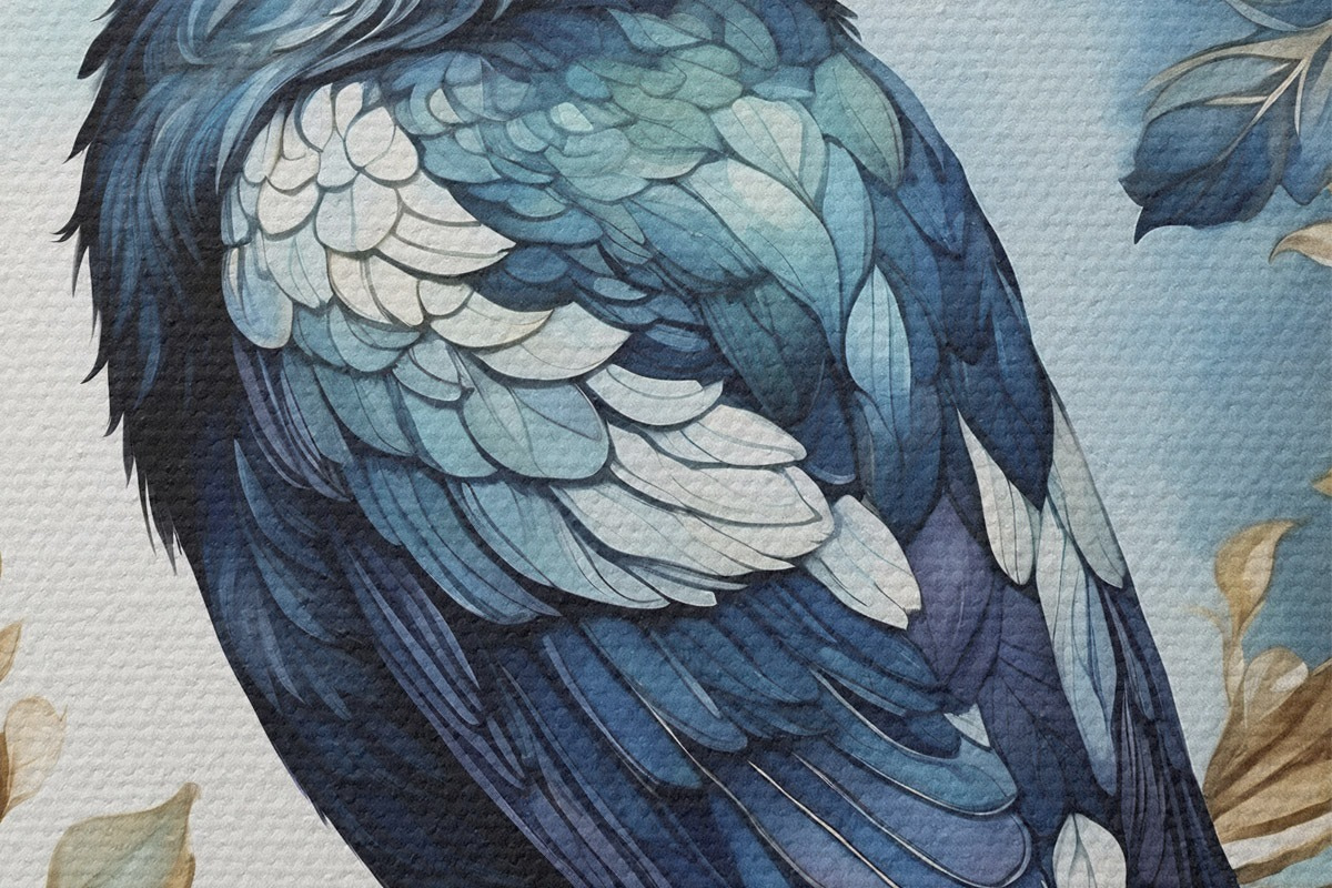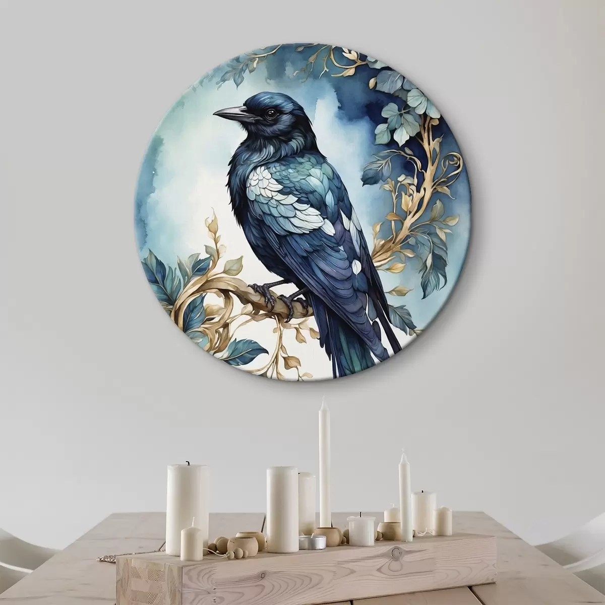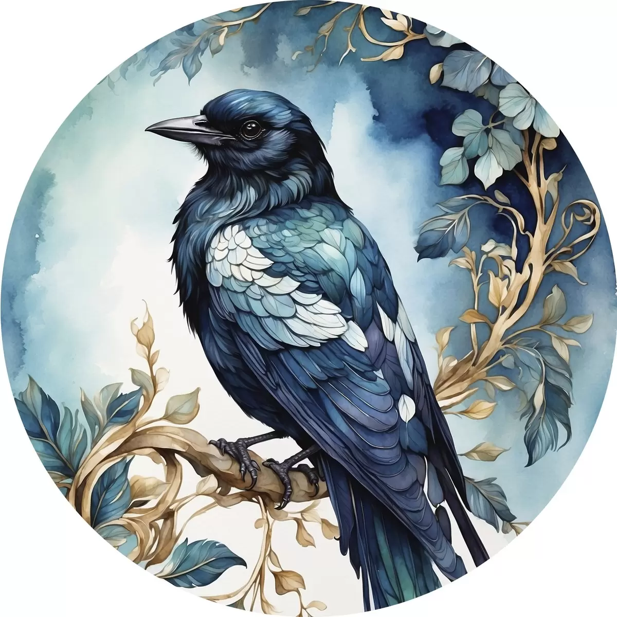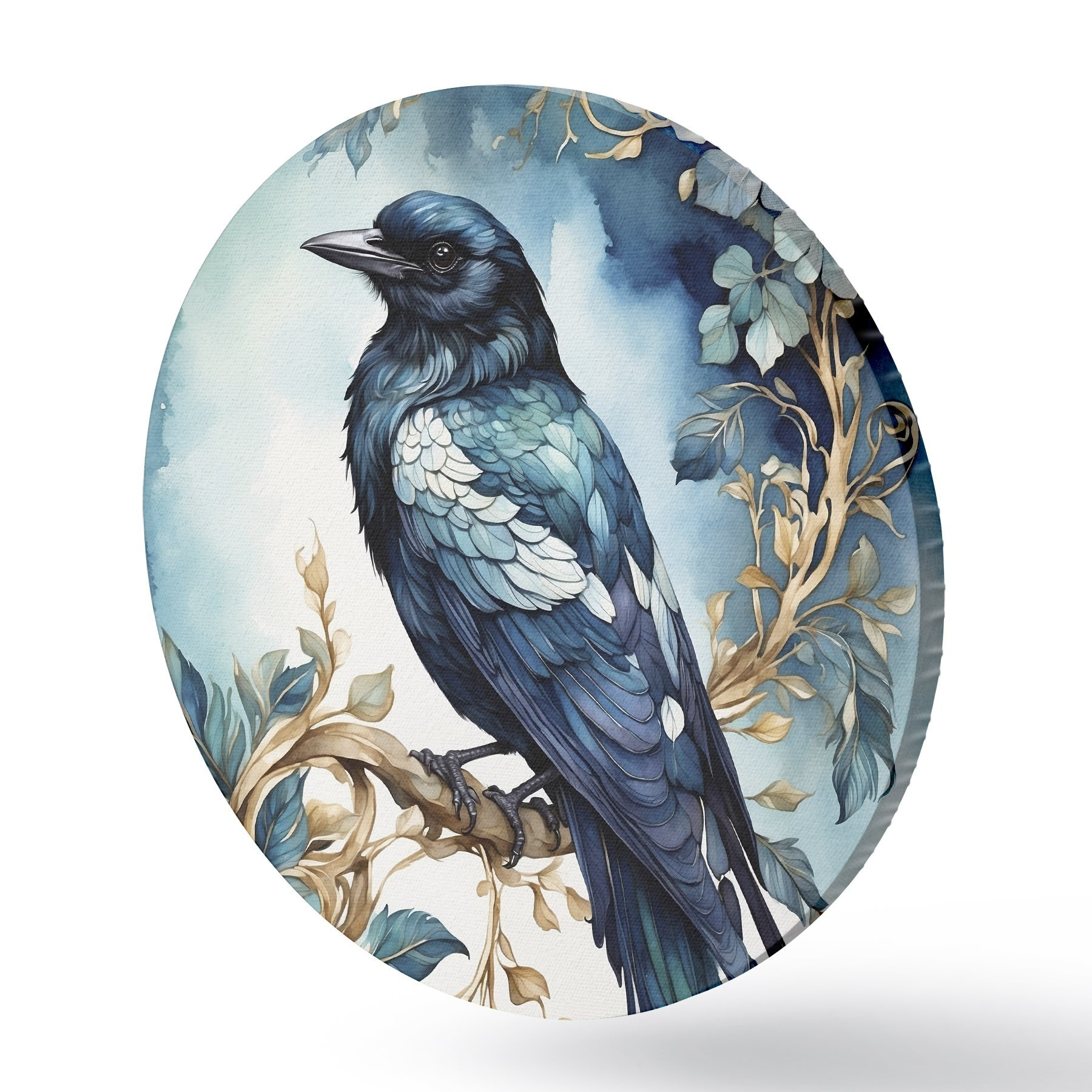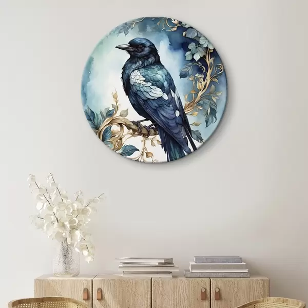Picturi rotunde Pasăre albastră pe o ramură cu frunze în stil acuarelă Nr r45483