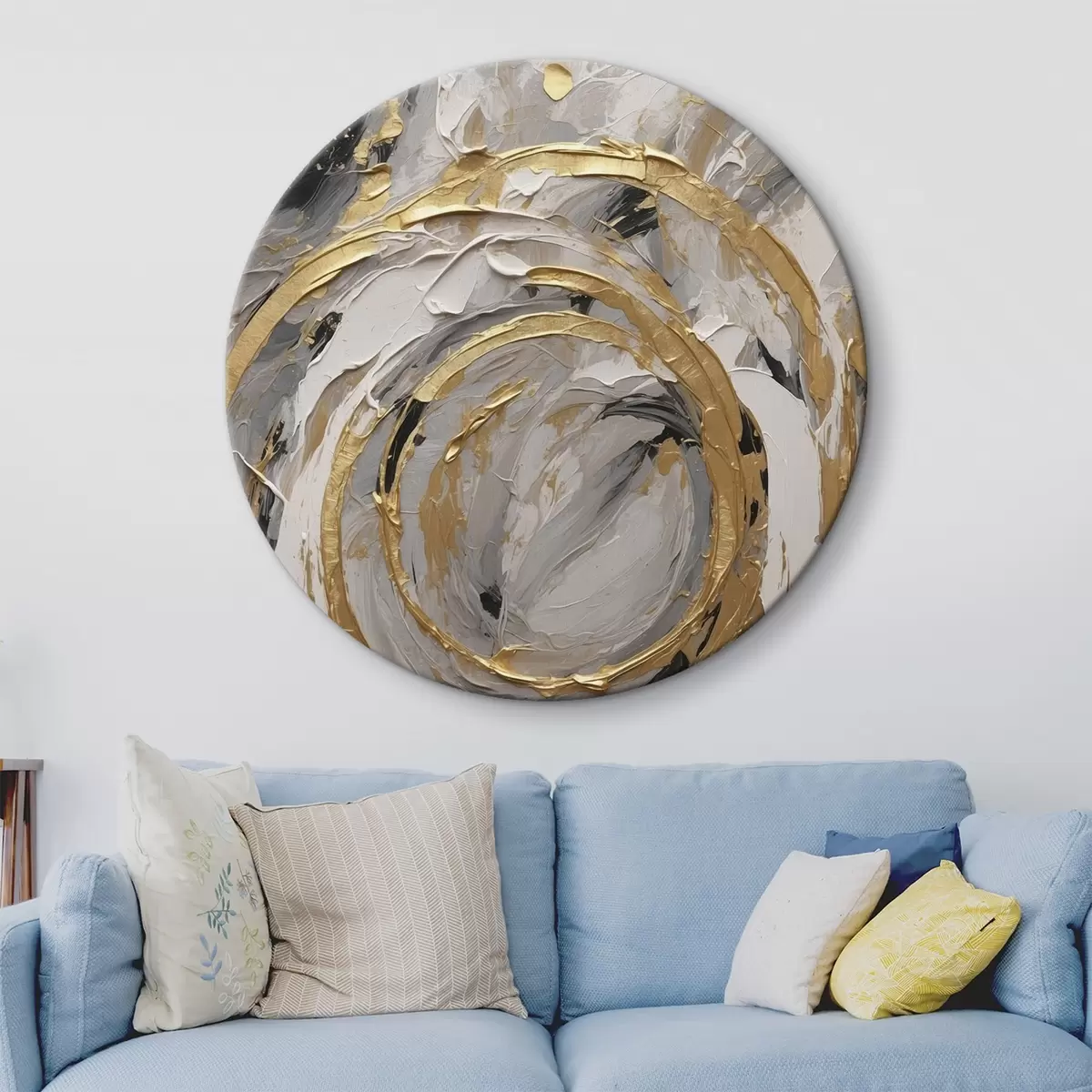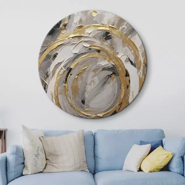 Picturi rotunde Cercuri concentrice abstracte în nuanțe de gri și alb Nr r45487