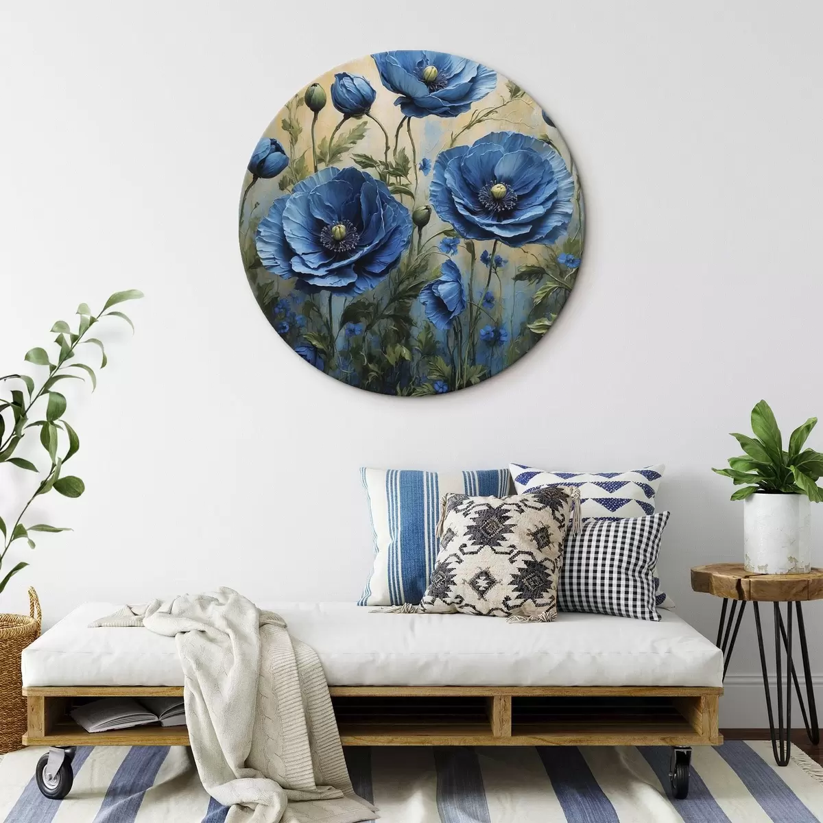 Picturi rotunde Poppies mari albastre cu muguri pe un fundal deschis r45488