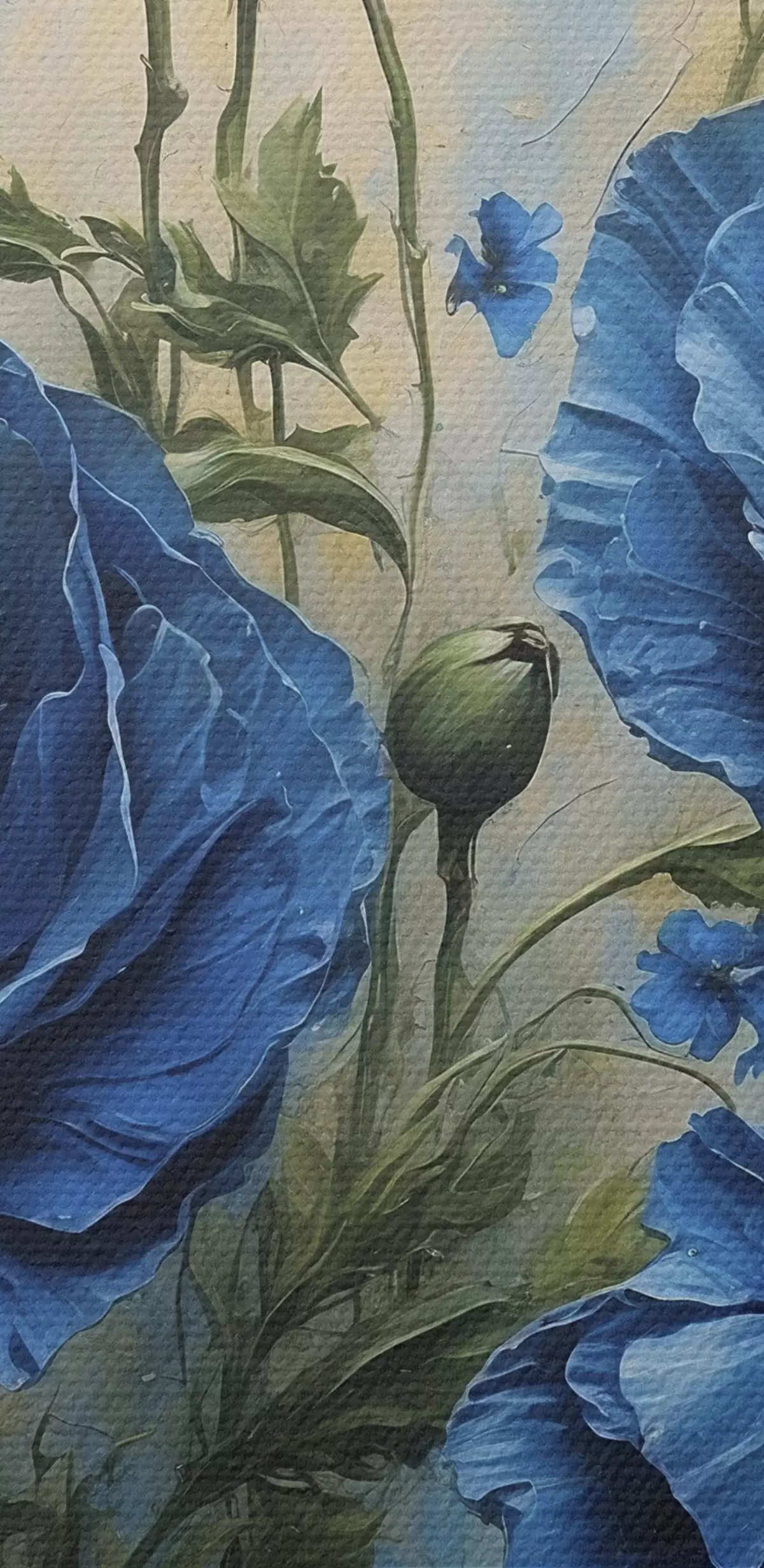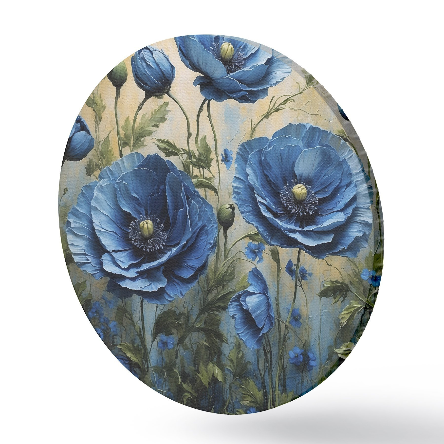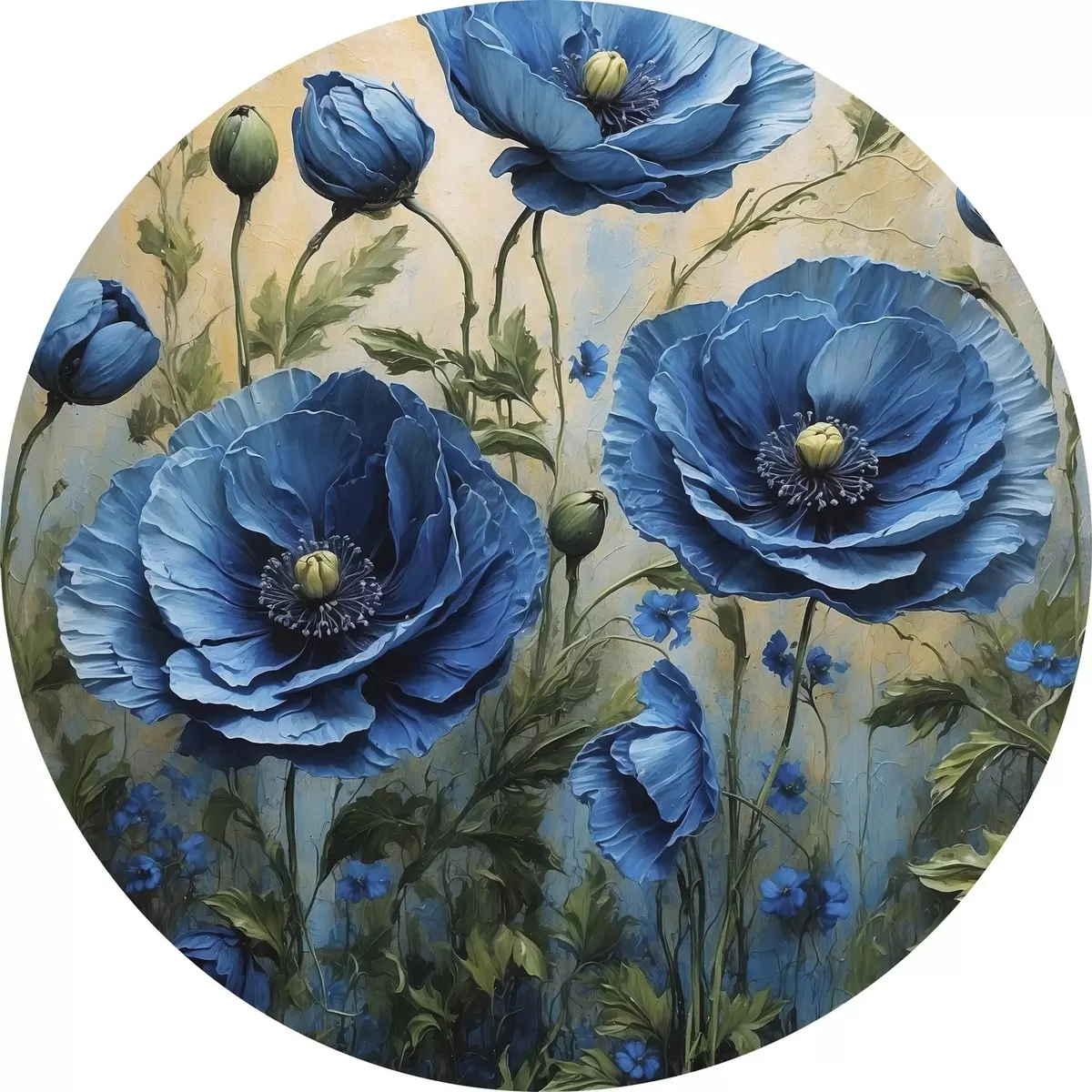 Picturi rotunde Poppies mari albastre cu muguri pe un fundal deschis Nr r45488