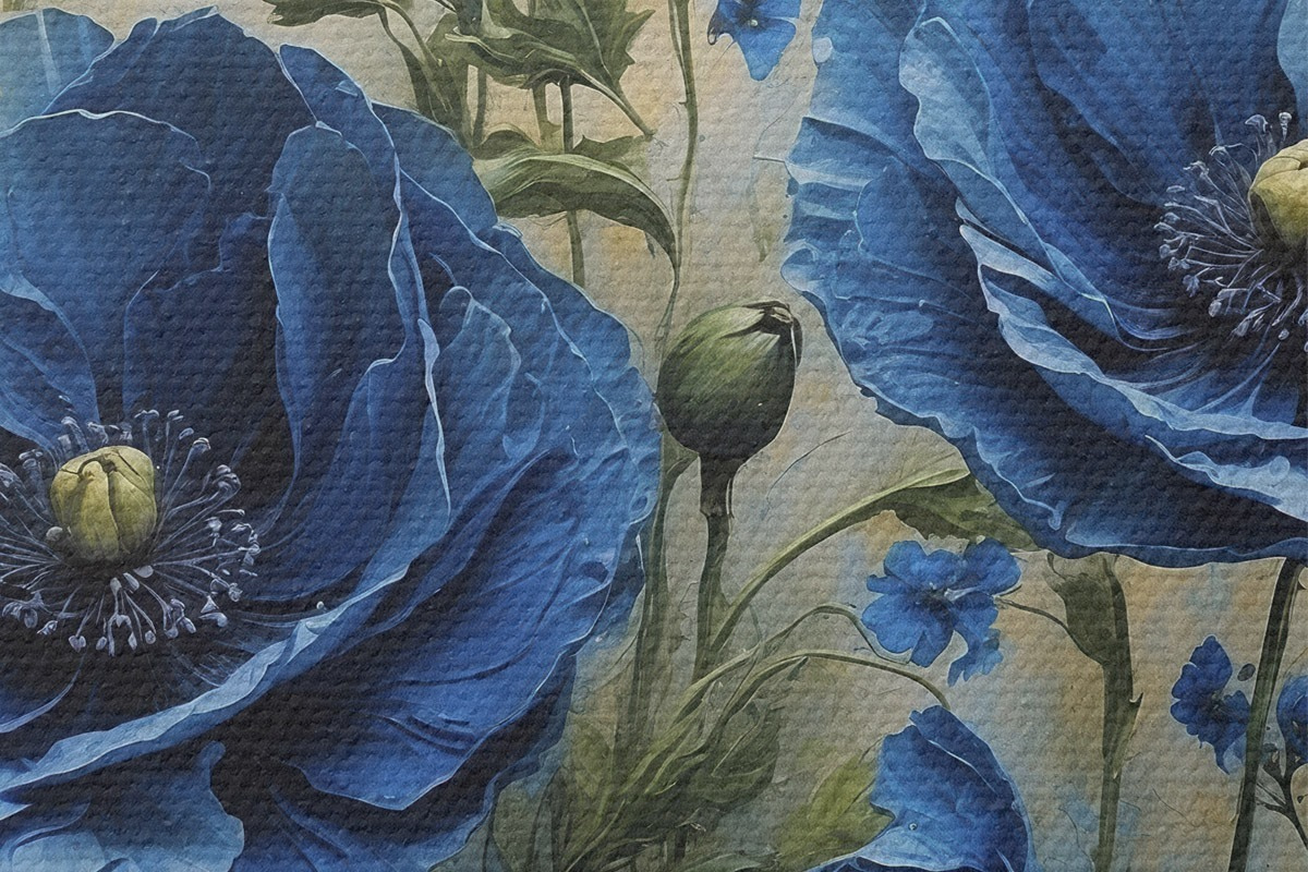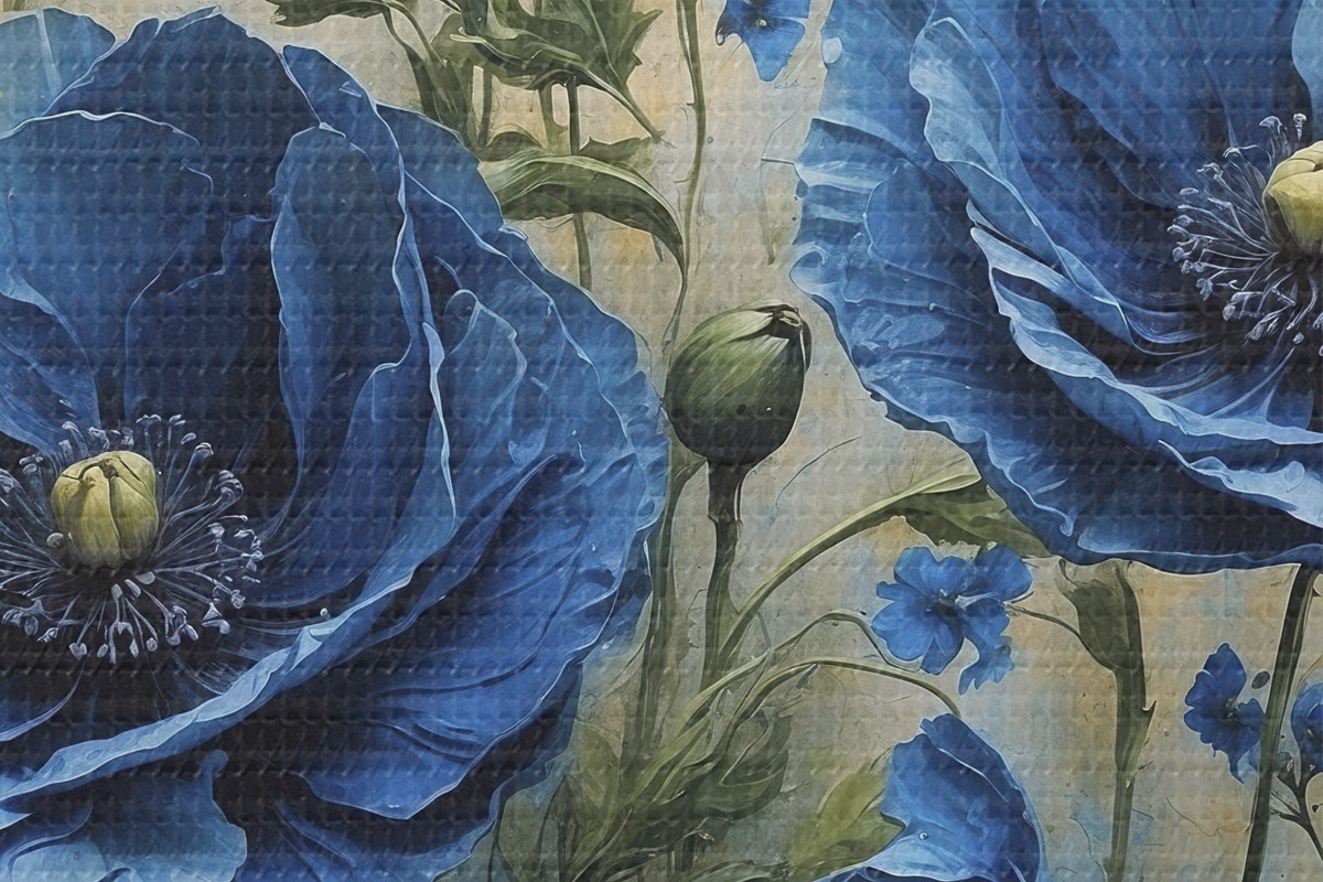 Picturi rotunde Poppies mari albastre cu muguri pe un fundal deschis r45488