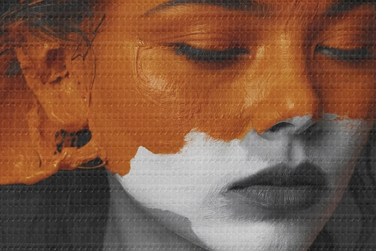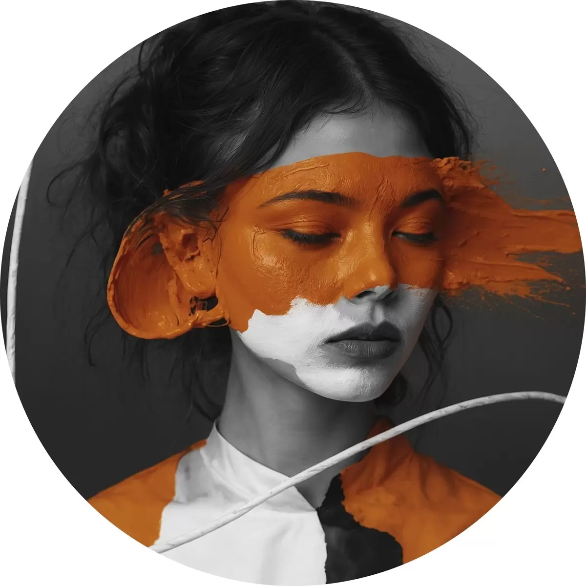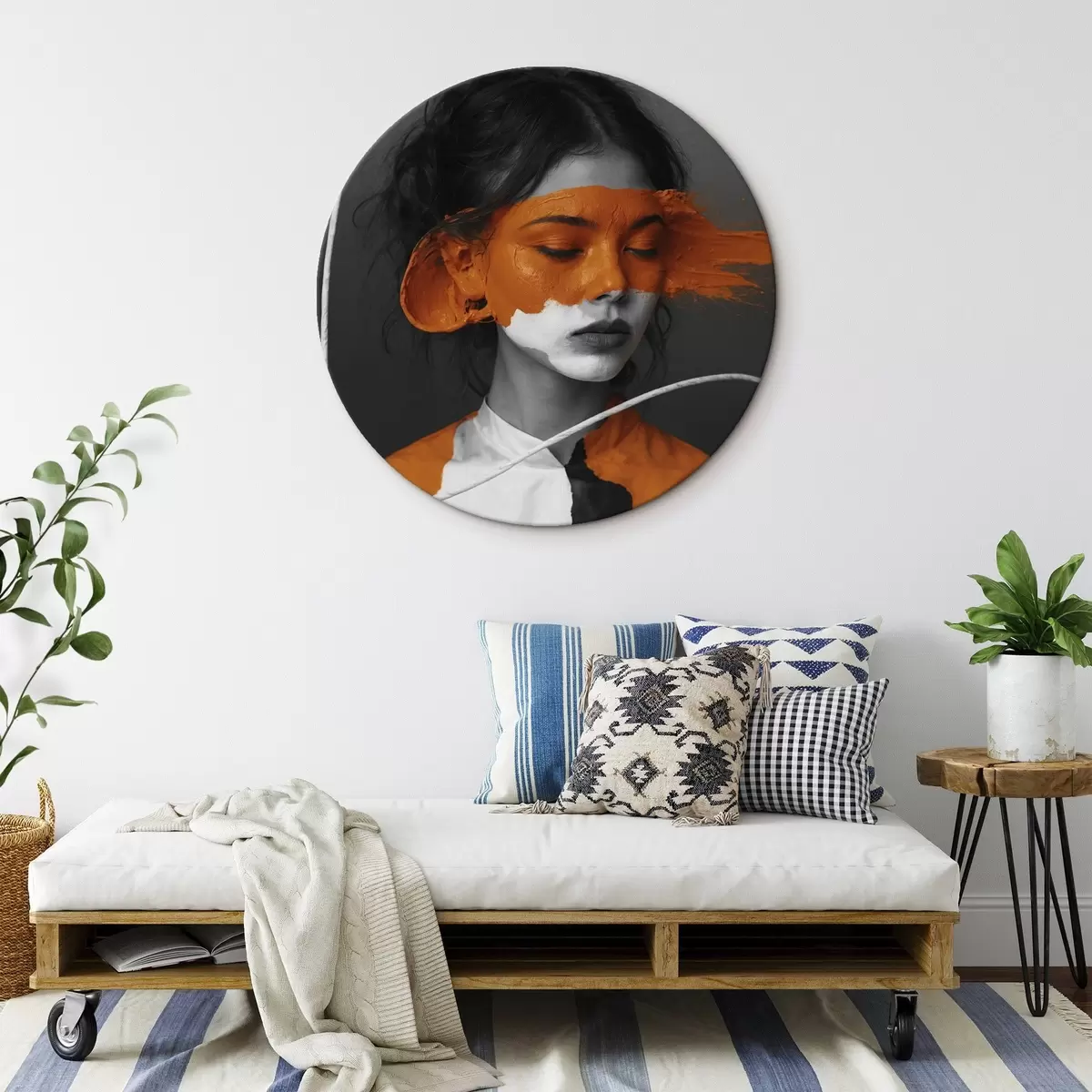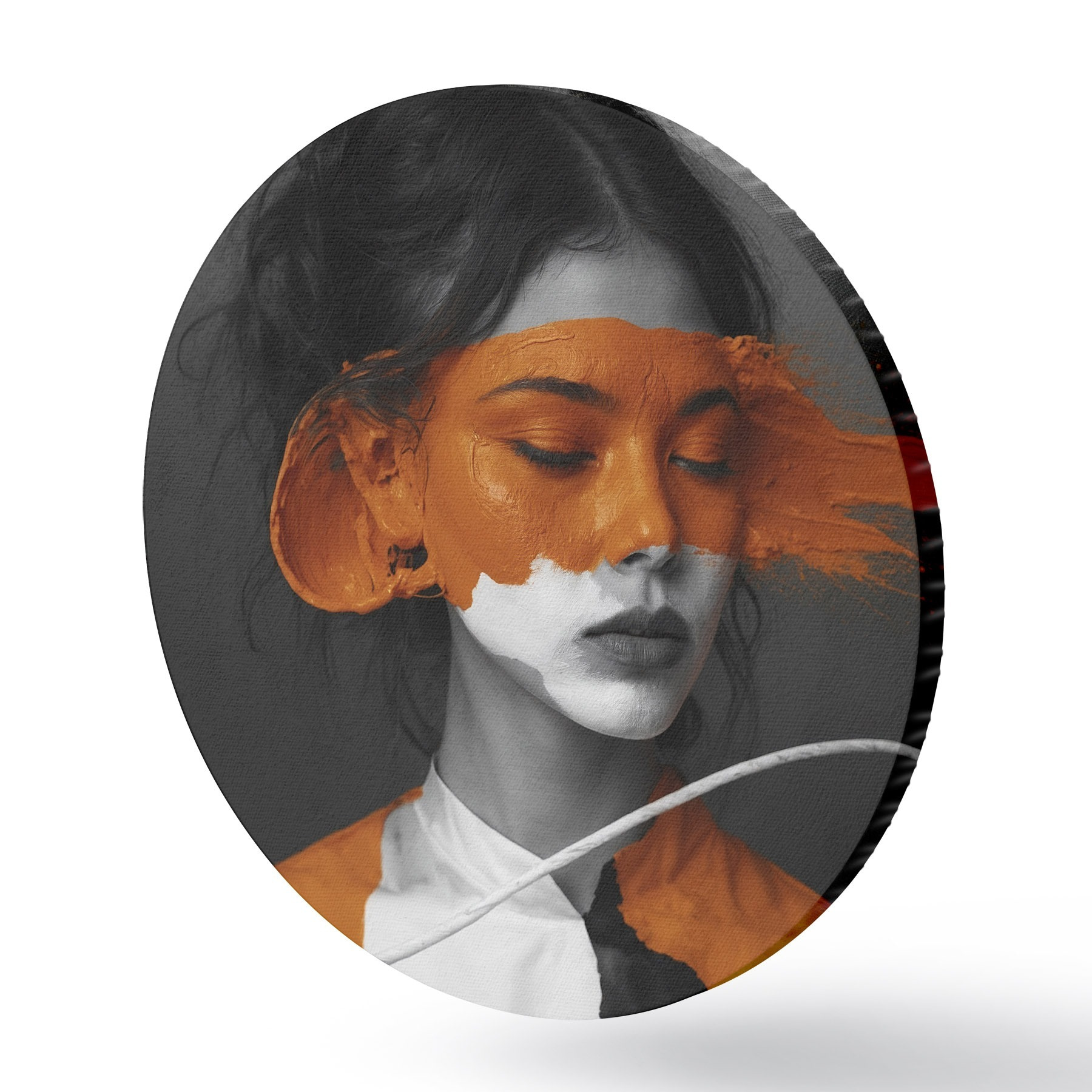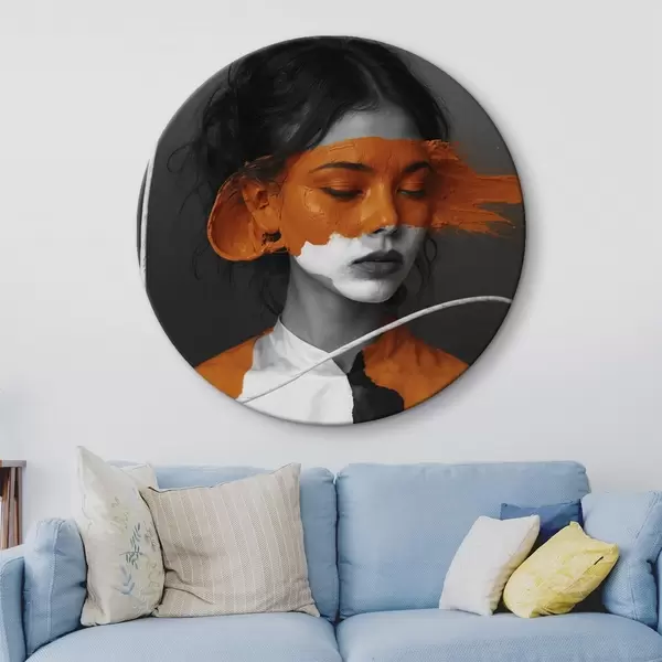 Picturi rotunde Portret de fată cu o imagine abstractă portocalie Nr r45495