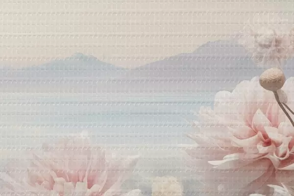 Picturi rotunde Delicate flori roz pe malul mării în zori Nr r45496