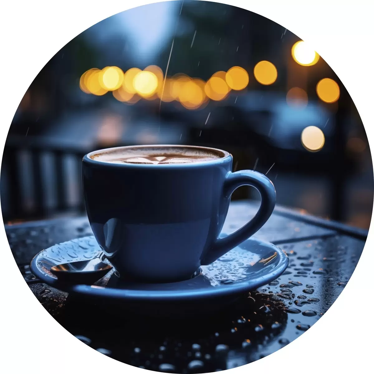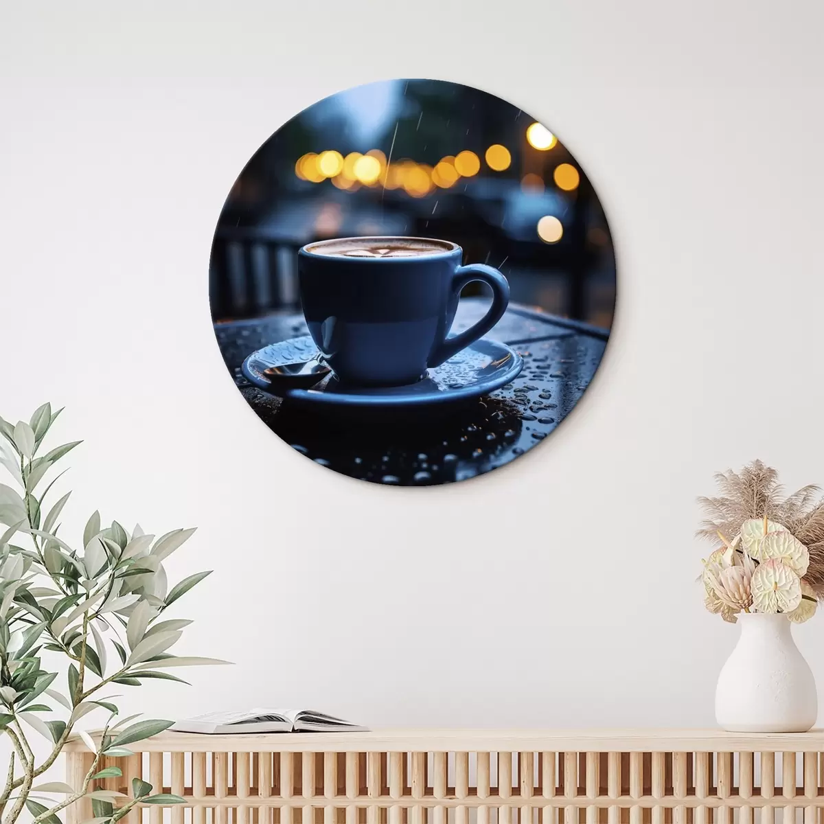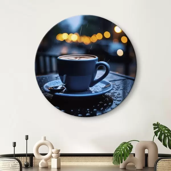 Picturi rotunde O ceașcă de cafea pe masă în ploaie Nr r45497
