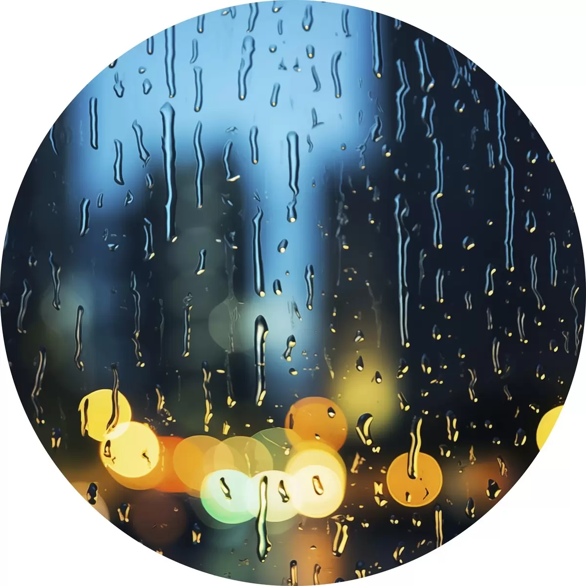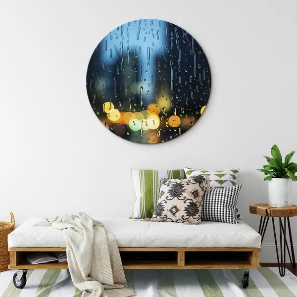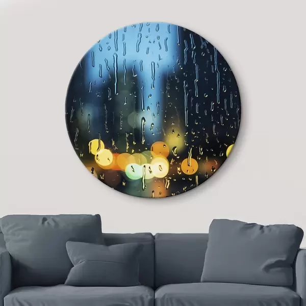 Picturi rotunde Picături de ploaie pe fereastră cu lumini de noapte Nr r45500
