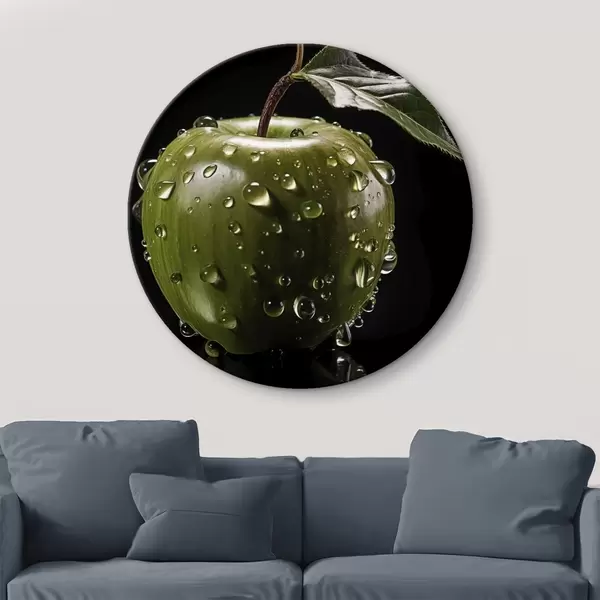 Picturi rotunde Măr verde cu picături de apă Nr r45506