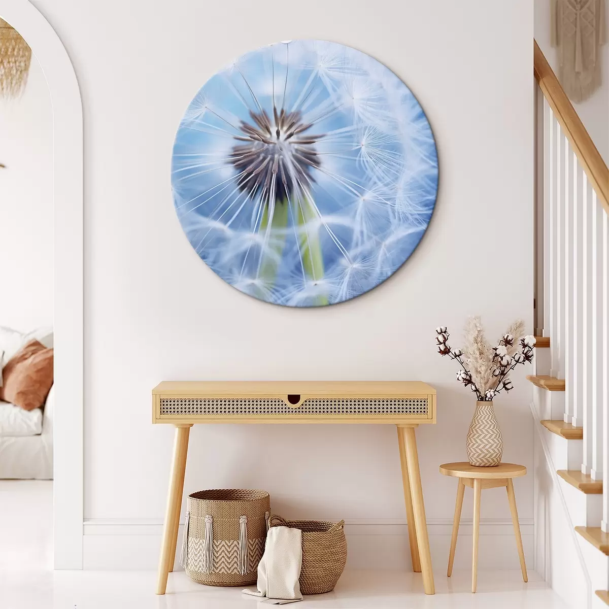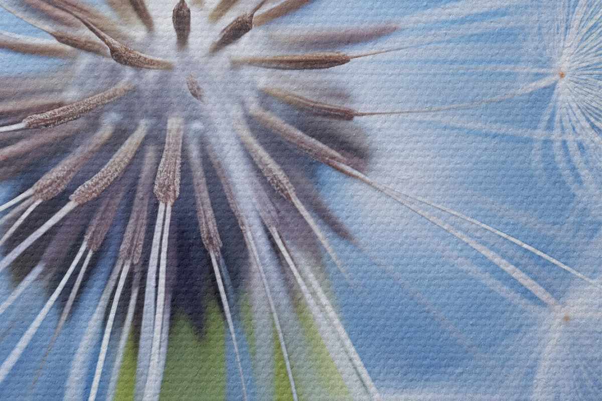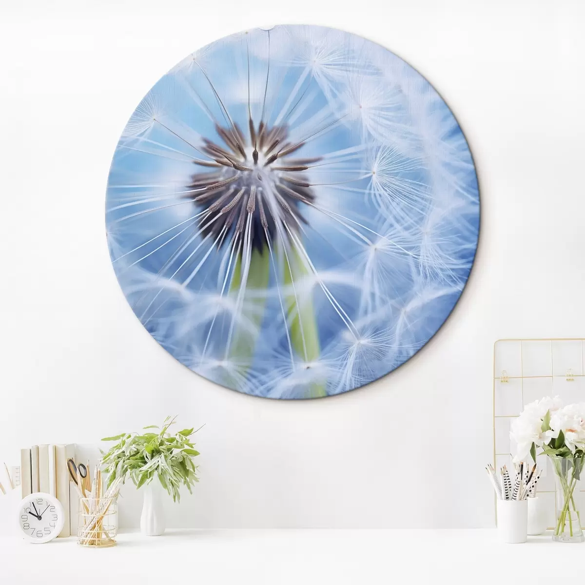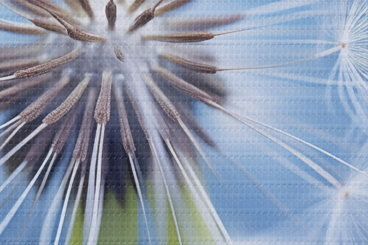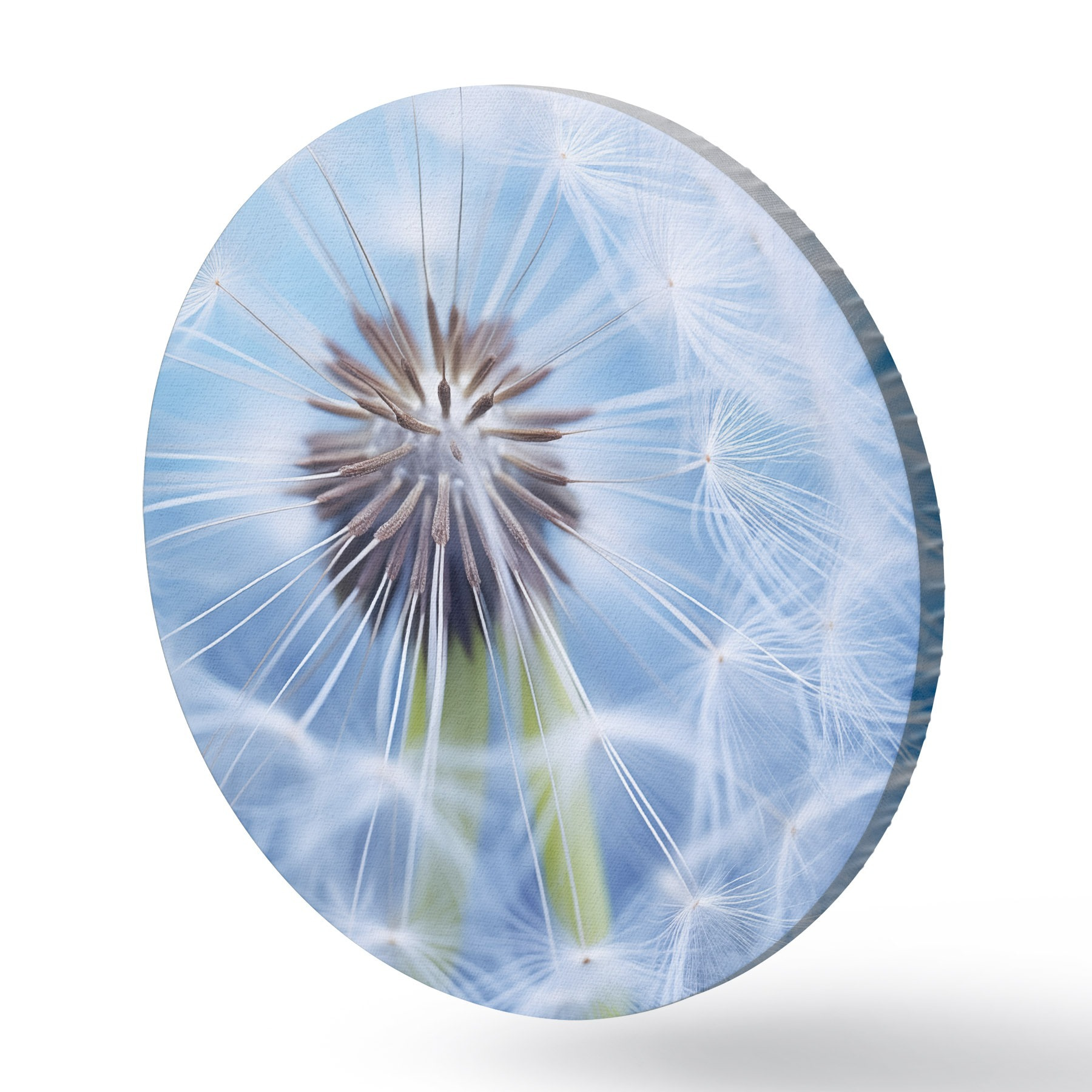 Picturi rotunde Macro fotografie a unei păpădii pe un fundal albastru r45517
