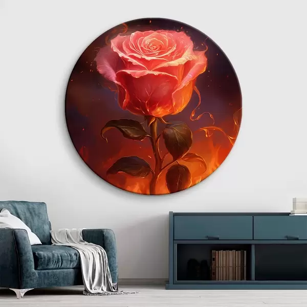 Picturi rotunde Trandafir roșu printre foc și scântei r45523