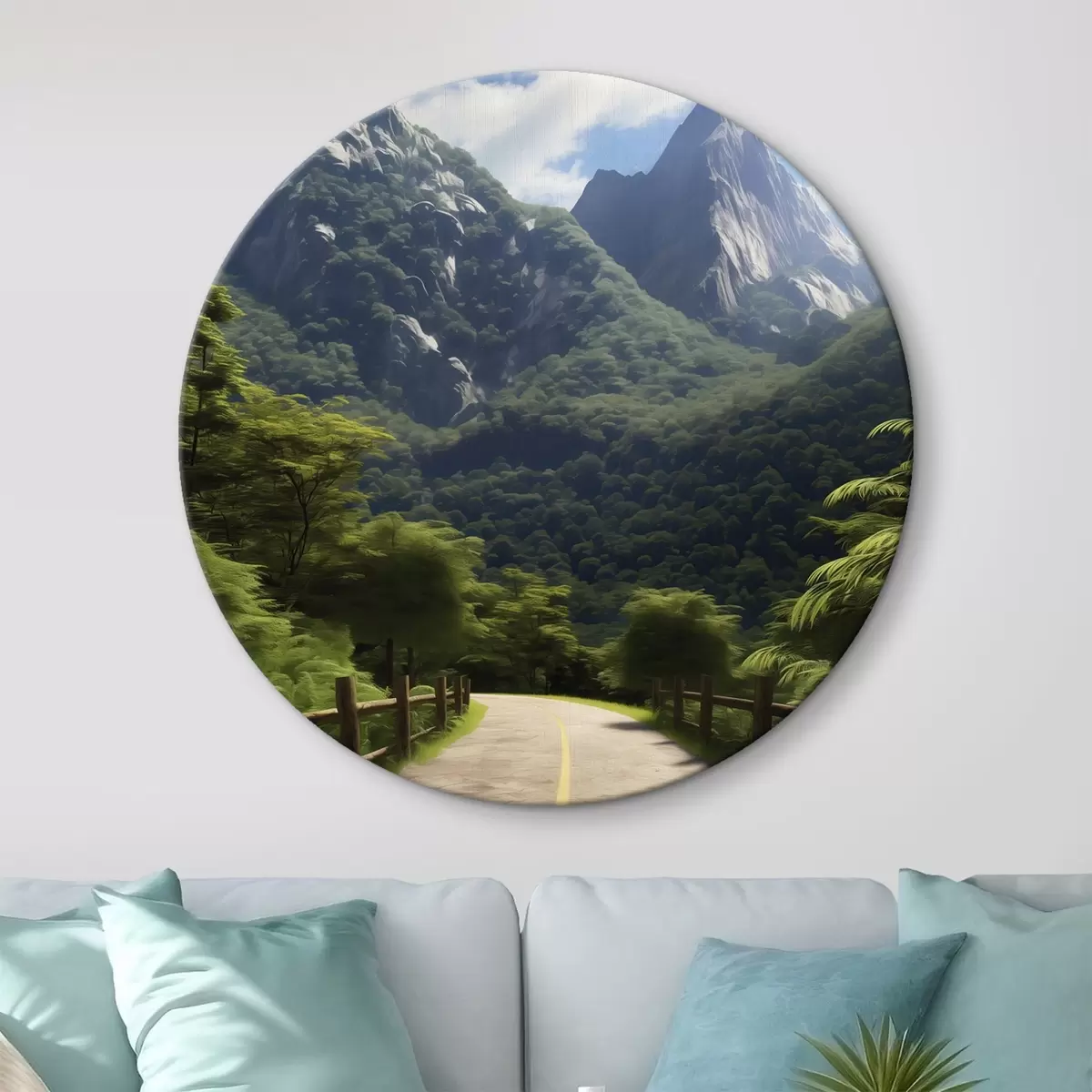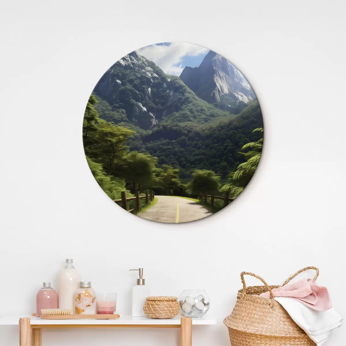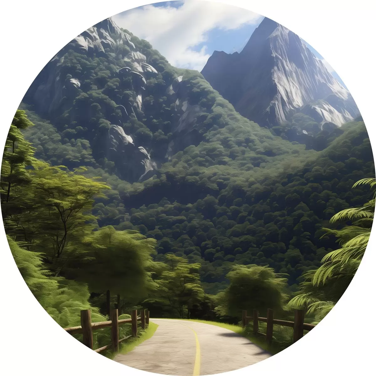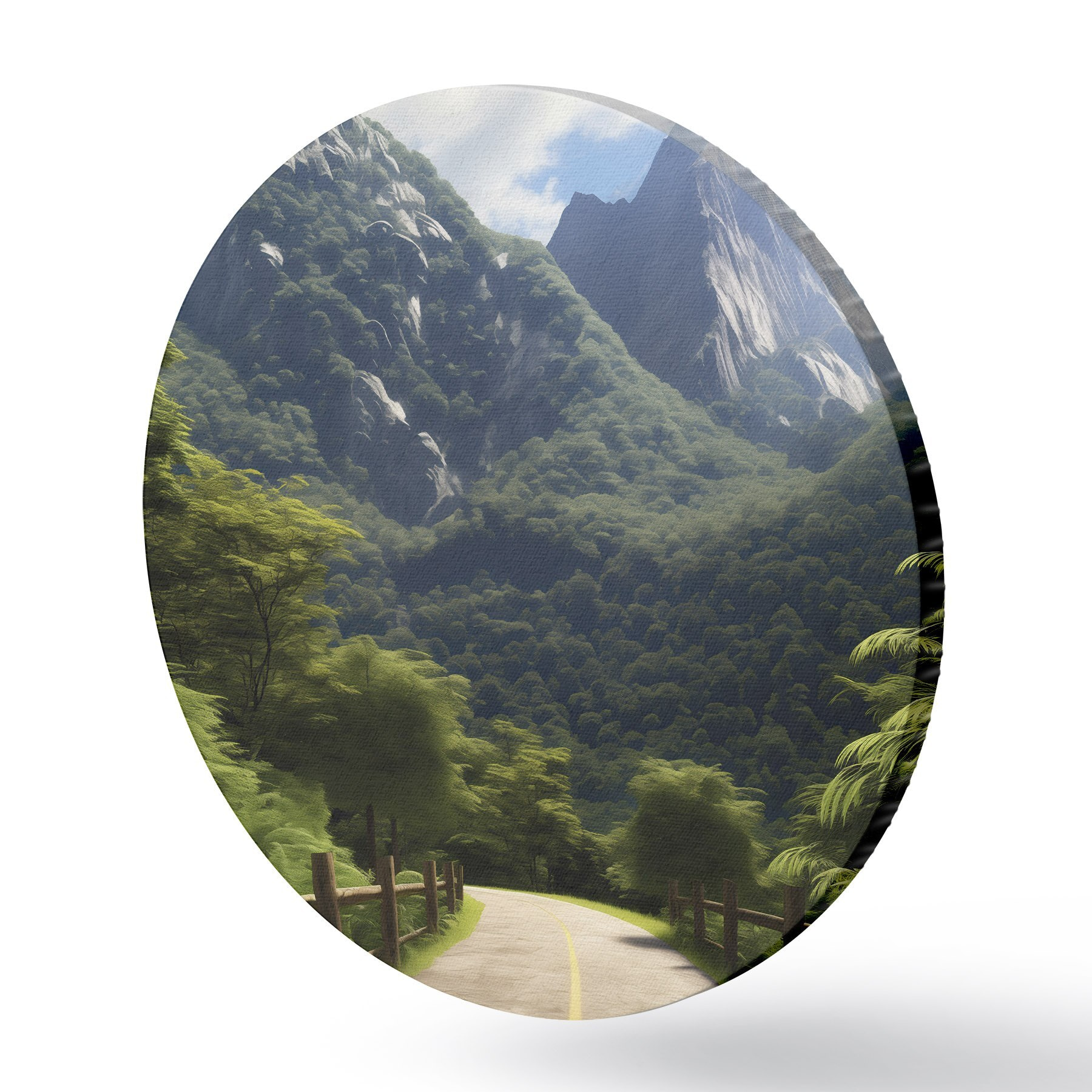 Picturi rotunde Drum de munte printre copaci verzi Nr r45525