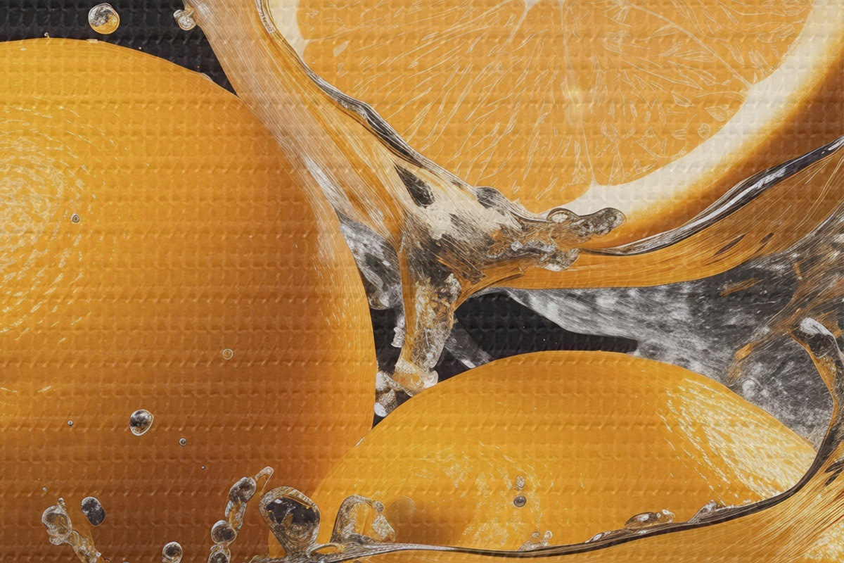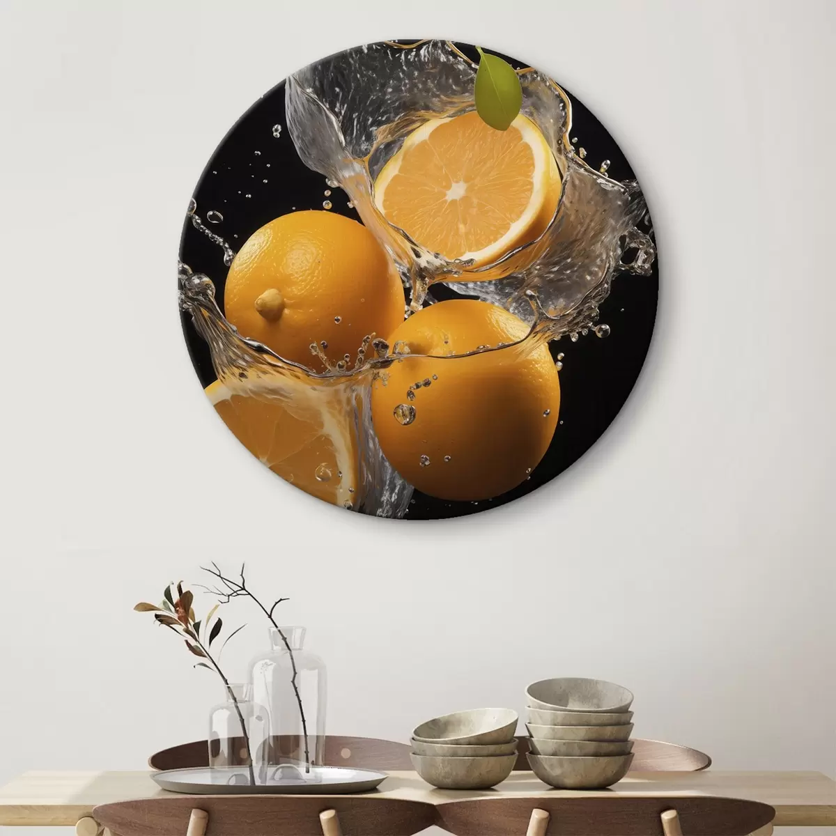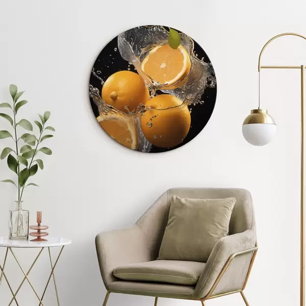 Picturi rotunde Portocale suculente în stropi de apă r45526