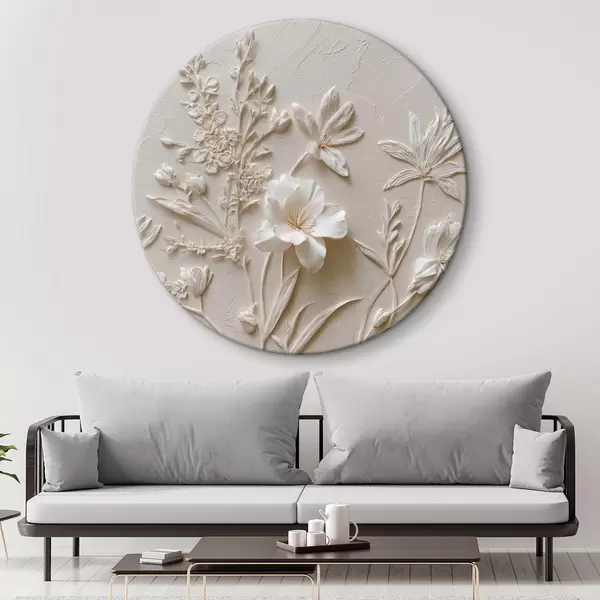 Picturi rotunde Motiv floral: stil basorelief cu plante pe un fundal deschis Nr r45536