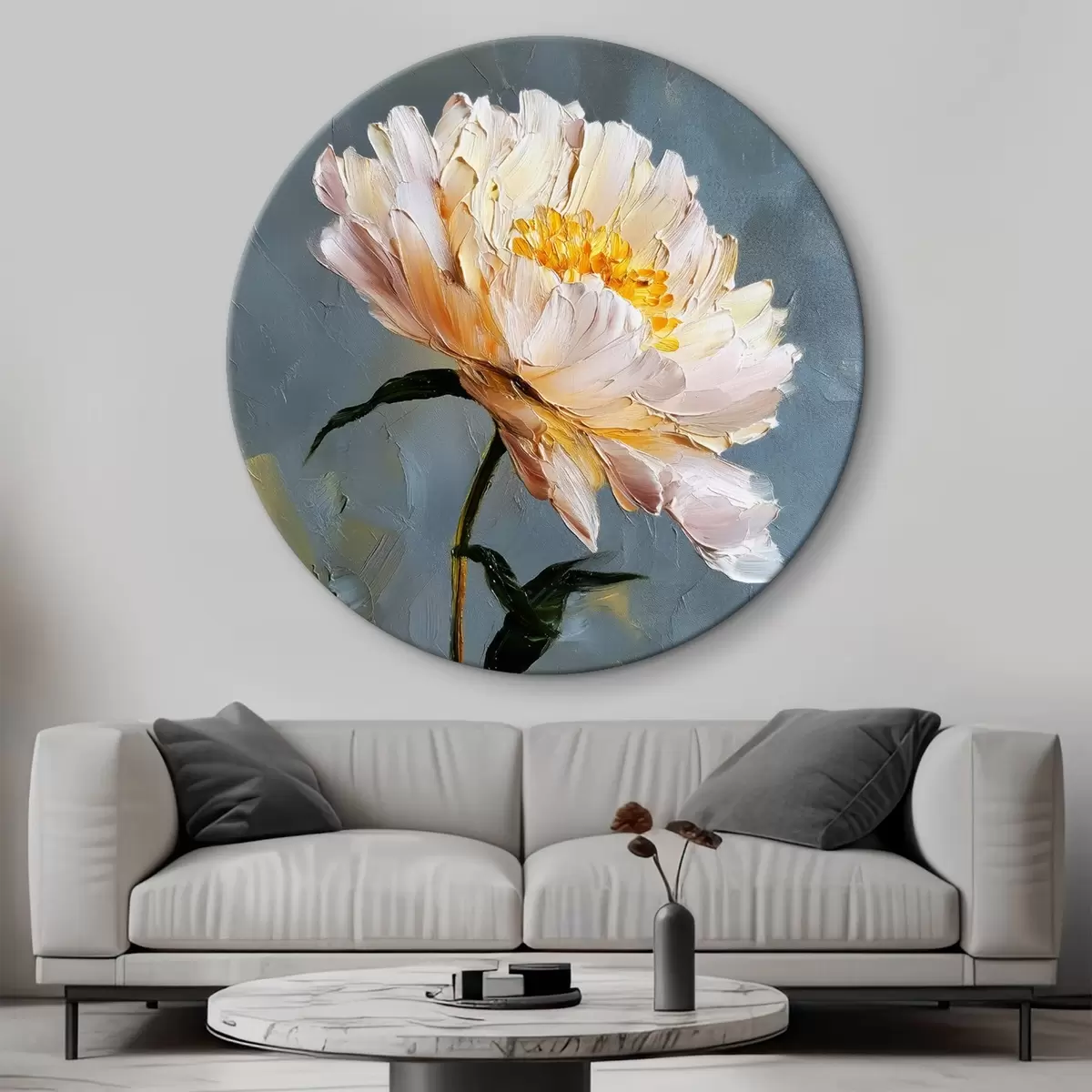 Picturi rotunde Floare abstractă: compoziție în tonuri de albastru și gri Nr r45542