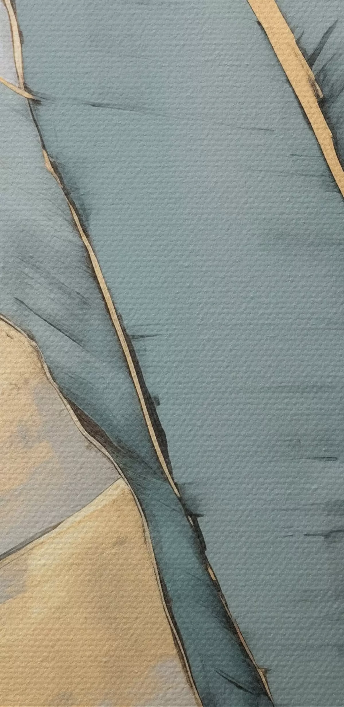 Picturi rotunde Frunze de banane albastre, gri și galbene cu tușe de pensulă vizibile, pe un fundal alb abstract Nr r45552