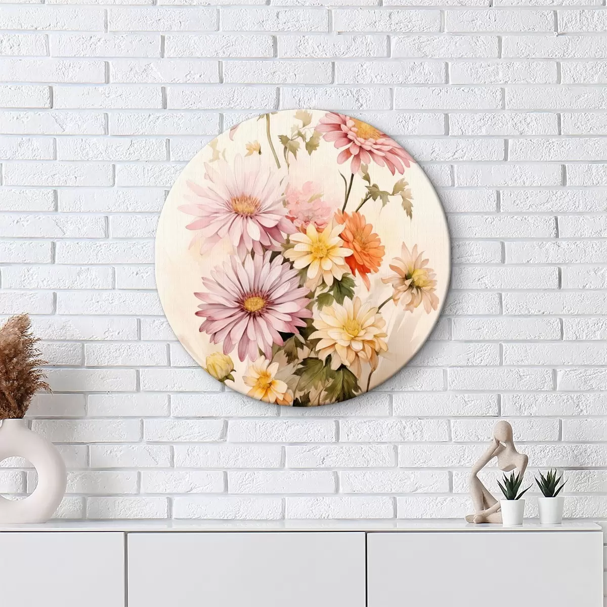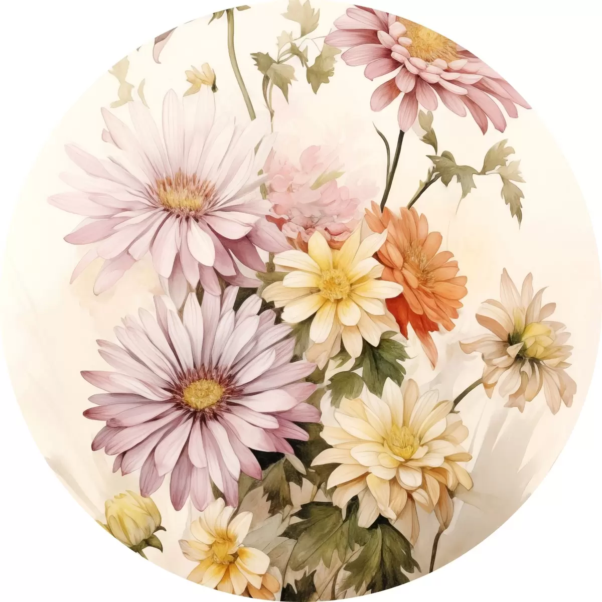 Picturi rotunde Un buchet de flori colorate, stil acuarelă moale, pe un fundal luminos Nr r45559