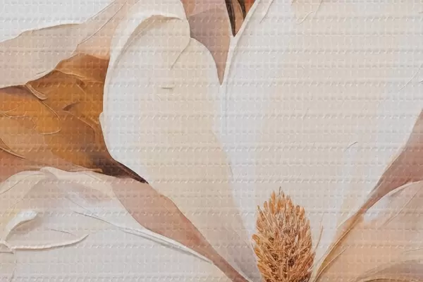 Picturi rotunde Flori albe de magnolie pe un fundal blând, neclar, cu tonuri de bej și maro, stil pictură r45572