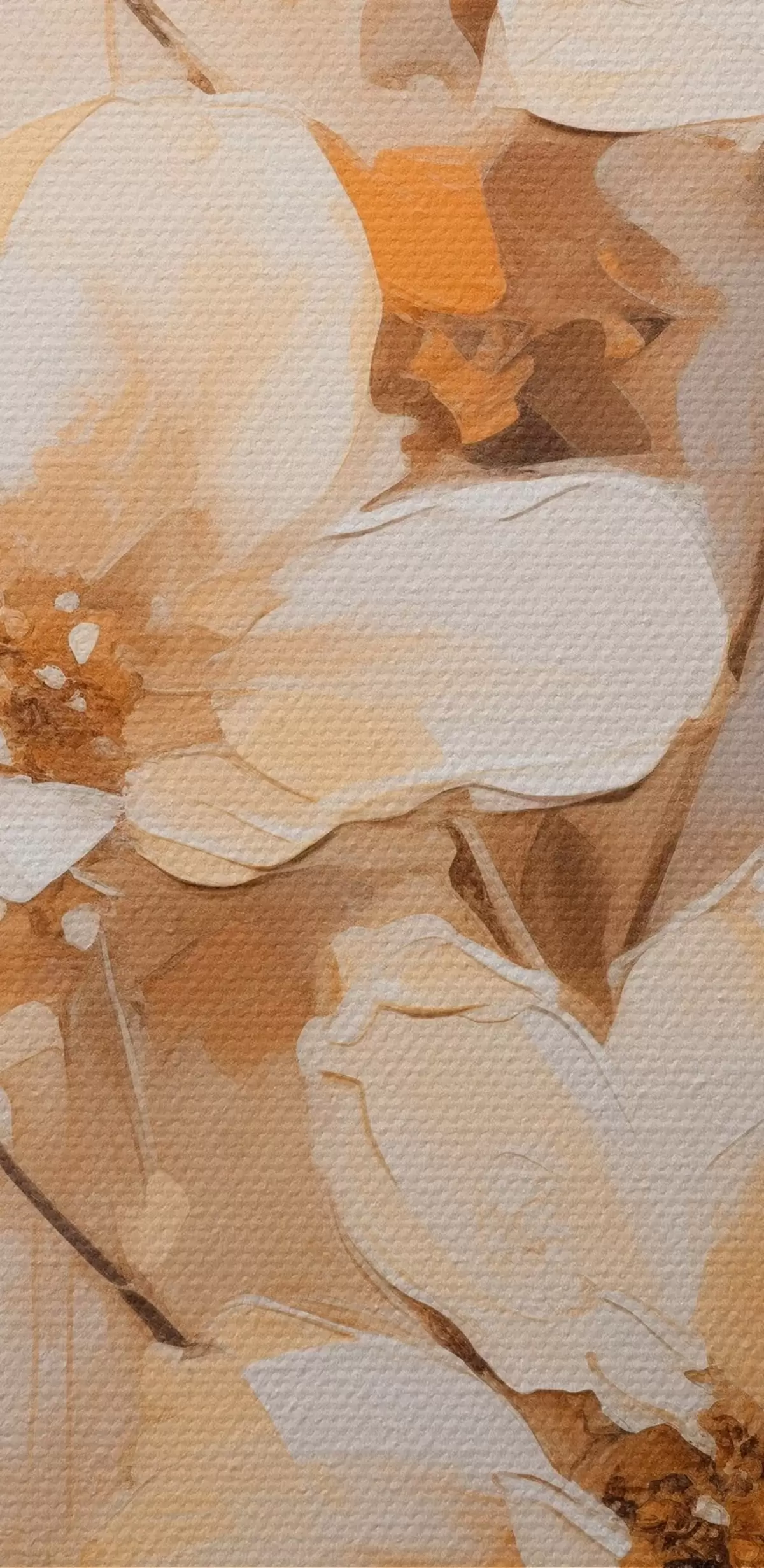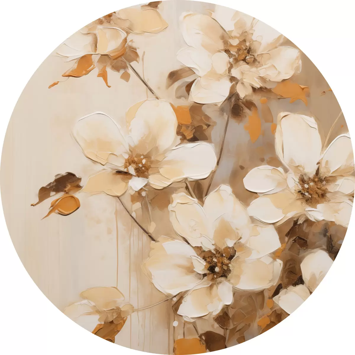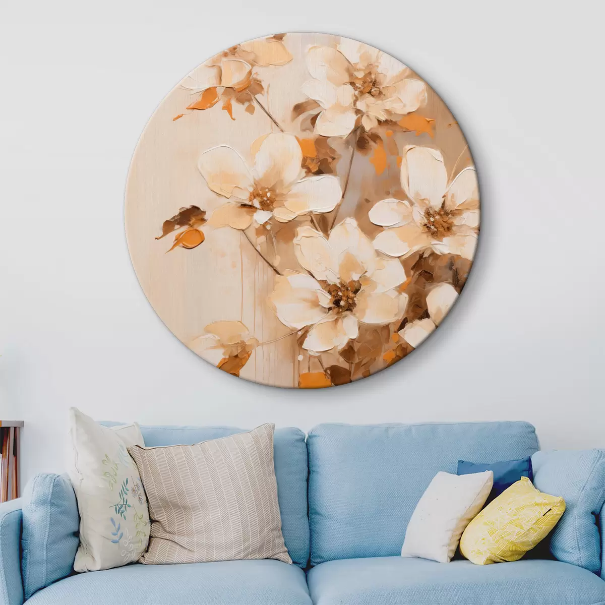 Picturi rotunde Flori albe cu frunze portocalii, tușe delicate, aranjament floral, artă botanică Nr r45574