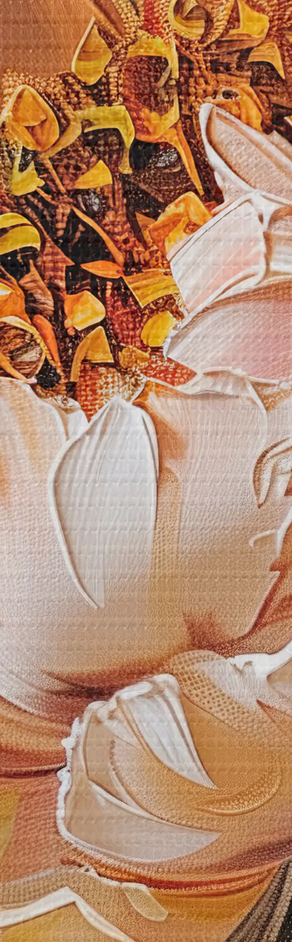Trei tipuri de materiale sunt disponibile pentru comandă: Economic Canvas - un material dens și durabil pentru imprimarea digitală, identic cu pânza de pictor, suprafață impermeabilă, reproducere realistă a detaliilor, material cu granulație medie. Premium Canvas - textura seamănă cu cea a pânzei unui pictor (fire mici împletite). Reproducere moale, detaliată a imaginii pe o suprafață mată. Eco-Premium - țesătură 100% bumbac de înaltă calitate. Datorită fibrelor naturale de bumbac, materialul este durabil și rezistent la uzură. Reproducere excelentă a culorilor și a detaliilor.